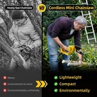 Cordless Chainsaw for DeWALT 20V Max Battery 6-Inch Hand-held Mini Pruning Saw Description A cool gift gadget for dad, elderly men, husband, yard work lovers, DIYers Powerful & Efficient Cutting: The mini chainsaw features a newly upgraded 2024 550W motor, allowing for up to 30 cuts per charge. Adequate for trimming, pruning, and cutting in the garden or yard Ultra-Lightweight Chainsaw: Only 2lb, its lightweight nature ensures that you can keep going this electric saw without any fatigue, making it ideal for seniors and women 2 Packs Batteries: This cordless chainsaw comes with 2 FCC & CE certified lithium-ion batteries, provides an impressive 100 minutes of continuous use for outdoor tasks Pole Saw Attainable: Compatible with the exclusive IMOUMLIVE extension pole, this electric chainsaw can reach up to 16.5ft for easier trimming of higher tree branches (the pole sells separately) Safety-First: Featuring a safety lock to prevent accidental starting, this handheld chainsaw also includes a widened hand guard for added protection. Keep your hands safe while working 365-day NO Worry Quality Service: Enjoy a one-year customer service for the chainsaw and batteries, with returns or exchanges available within this period. Your satisfaction is our priority Out of the Box: This electric saw comes fully assembled and ready to use. Includes a chainsaw, 2 chains (one installed), 2 batteries, a charger, and a pot of lubricant. Get started on your projects right away