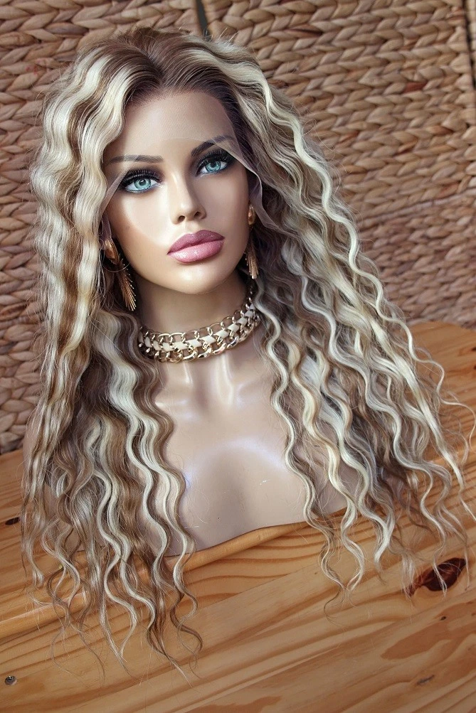 $ 61.6624 Inch HighlightBlonde Wave 100% Human Hair Wig 13x4 Lace Front Wigs