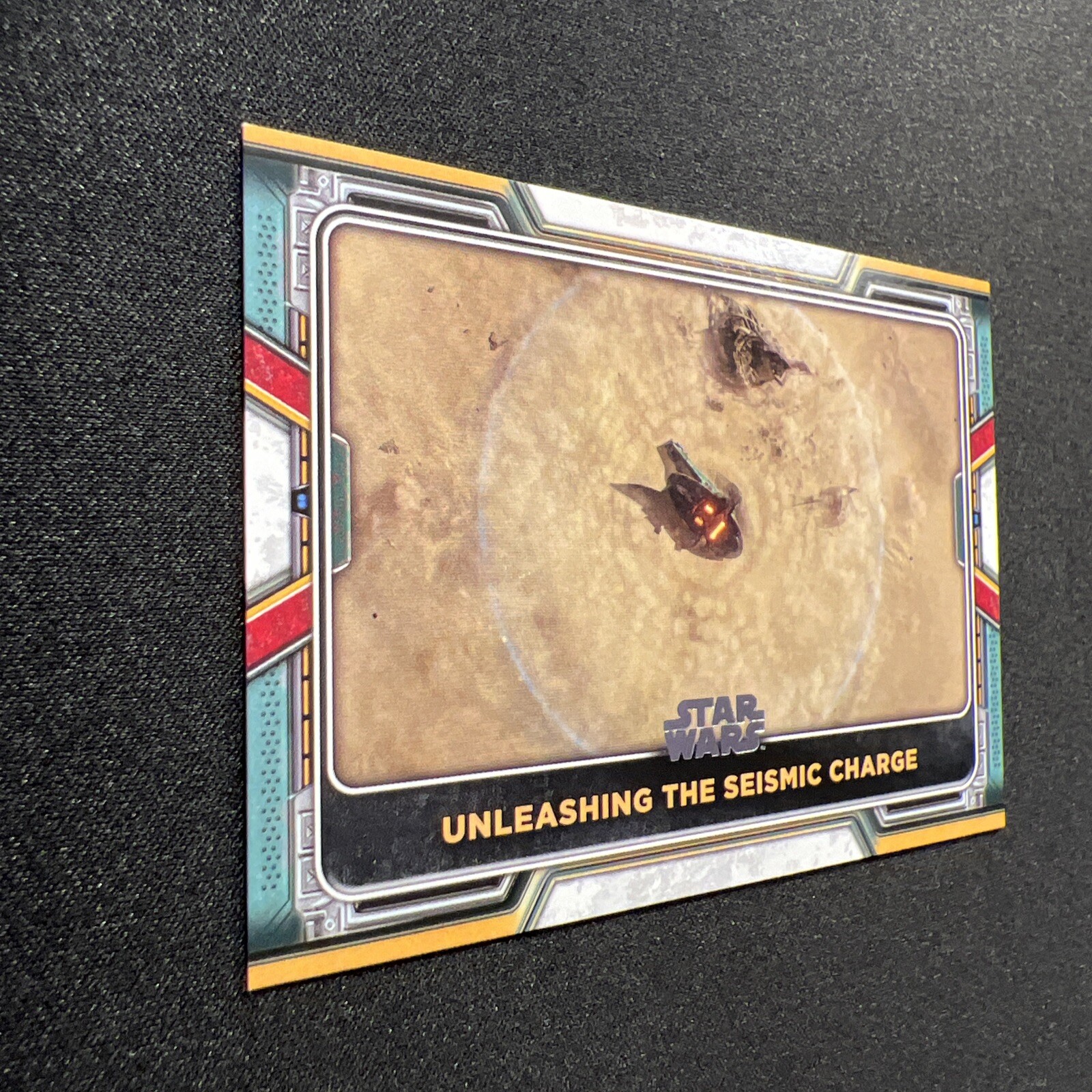 This trading card from the 2022 Topps Star Wars collection features Boba Fett and the iconic Unleashing the Seismic Charge scene from The Book of Boba Fett. The card is made of high-quality card stock with a thickness of 35 Pt. and is a standard size for trading cards. It is an original print from Topps and is part of the base set, with the added feature of the Unleashing the Seismic Charge parallel/variety. The card is in excellent shape and ready for collection or trading, with no signs of wear or damage. It is a must-have for any Star Wars fan, especially those who love Boba Fett. Get this card now and complete your Star Wars trading card collection! π· Find hundreds of categorized cards in our Ebay Store! Please visit our store and give us a follow! TONS of AMAZING deals, Store specials and daily postings! Be sure to give us a follow to receive information on our Deals, Coupons and daily listings! π· π Shippingπ Orders of 1-3 cards are carefully placed into a Penny sleeve and placed into a top loader for shipping. We carefully use painters' tape to secure them to a piece of cardboard and put them in an (PWE) envelope with a small thank you note. Orders of 3+ cards are sent in a penny sleeve secured into a certified eBay trading card envelope. All cards are packed and sent out with upmost care as we understand the importance of preservation with being a collector. Cards that sell for less than $15 dollars are carefully mailed standard USPS mail. Cards with a selling price of more than $15 will be mailed USPS Priority with tracking and insurance protection. Thank you! Please check out our eBay store and other listings! Please, feel free to reach out with any questions, and please keep an eye out for our listings that include a charity donation to the American Stroke Foundation!