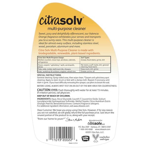 A great multi-purpose cleaner that can handle almost any household task (even tough on grease). Ideally suited for stainless steel, wood, porcelain, aluminum and other surfaces. Available in fresh Valencia Orange.