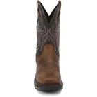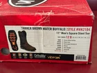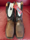 $219.95 MSRP Description & Details The Tanker Brown Steel Toe workboot has traditional cowboy boot qualities yet practical details for the work field. With a black onyx shaft and tobacco square steel toe, this boot blends functionality with style. On the interior, the Ortholite® insole cushions the foot while the steel toe protects it from any possible hazard. The exterior features the Vibram® Commander-X5™ rubber outsole that is resistant to heat, oil, chipping, chemicals, and slipping so you are prepared no matter what comes your way. This boot is electrical hazard rated and meets ASTM F2413-11, 175, C75 EH safety footwear standards. Details Upper: Premium Full Grain Leather Lining: Woven Insole: Ortholite®Removable Insert Toe Shape: Square Construction: Cement Outsole: Vibram® Safety Features: EH, Steel Toe, Oil and Slip Resisting, ASTM F2413 rated Features Vibram® Outsole - We partnered with Vibram®, the world’s leader in high performance rubber soles, to develop an outsole specifically designed for outdoor work and recreation. Slip Resisting - Designed with heavy-duty outsoles that influence the grip of the boot when walking on wet surfaces. Electric Hazard - Our electrical hazard rated boots protect you from open electrical currents from the bottom up. Tested up to 18,000 volts. Steel Toe - From the ranch to the construction site, our steel toe boots are the ideal solution for the working man and woman meeting industry standards for impact and compression.