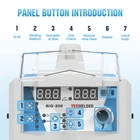 Note: The machine is not same with Model: MIG-205DS. The machine can't weld Aluminum The lift tig torch is not included with the machine and needs to be purchased separately. Our warehouse will match you with the nearest delivery warehouse based on the delivery address, but eBay only allows us to display one location, so the actual shipping location and the displayed shipping location may be different. MIG-200 220V 200Amp MIG/Stick/TIG Multi-Process Welder MIG-200 is a versatile 3-in-1 multi-process welder with MIG synergic control. Its IGBT inverter technology ensures high power in a lightweight, compact unit (21.83 lbs), making it suitable for various applications including hardware, car modification, equipment, and factory maintenance. The unit is capable of performing MIG, lift TIG, and stick welding, offering flexibility and convenience for users. Speceifcition Input Voltage: 220VAC, 50/60 Hz (110V is not Available ) Output Current: 30-200A(MIG)/ 20-180A(MMA)/ 30-200A(TIG) Duty Cycle: 60% Shipping Dimension: 20.47"x16.73"x11.02" Shipping Weight: 33.4 lbs Package Includes Mig Gun Electrode holder Earth clamp Gas Hose Hammer &Brush Warning Please do not using MIG 200 with rainy day or placing with water. Please use the compressor to clean the machine, after using in a dusty environment or not using it for a long time. Do not weld gas MIG/Lift TIG without connecting gas. Do not weld Aluminum plate. Product Highlights Gasless/ Gas MIG Welding Can handle 2 lbs and 10lbs rolls of wire. Gas MIG, recommended to use .030" (0.8mm) &.035" (0.9mm) ER70S-6 in CO2/MIG and 25%CO2 / 75% Argon MAG Gasless, only 0.9mm(.035") system available, but you can manually set tension 3.5& Amp >100A for 0.8mm (.030") flux-cored wire. Synergic Controlled Synergic Control MIG Function allows the automatic change of the voltage & wire feeding speed by adjusting the amperage or choosing different thicknesses. It will match the welding chart set in the data. Others 2T/4T design: 2T is suitable for shorter welds and gives the operator more control over the start and stop of the welding process. 4T is suitable for longer welds as the operator does not have to hold down the trigger for the entire duration of the weld. DC Stick/ Lift TIG Available (Accessories for TIG Welding not included) 2T/ 4T Design: 2T: trigger mode used in welding where the operator presses the trigger to start welding and releases it to stop. 4T: trigger mode used in welding where the operator presses the trigger once to start the weld and presses it again to stop. Welding Method: Switching in different welding conditions. MIG/ CO2- CO2 100%, MAG- CO2 25% Argon 75% solid wire ER70S-6, Stick Welding, Lift tig welding, Gasless-Flux wire 0.9mm(.035") ET71-GS. Diameter of Wire: Switching in different welding conditions.0.6(.023"), 0.8(.030") &0.9(.035") on MIG/ CO2 and MAG conditions. The Gasless welding only available for 0.9(.035") ET71-GS flux wire. Display showing with various value: A, V, Thickness and inductance. (Amperage-When we select different values, the wire feeding speed and voltage will automatically match the welding chart built-in). Value Changing Knob Gas Check Manual Wire Feed Button