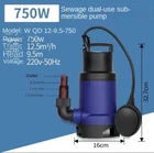 220V 750W Household Water Pump Fish Tank Drain Pump Irrigation Submersible Pump