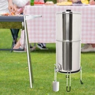 Package Included 1 * Gravity-fed Water Filter System 2 * Cartridges All Accessories for Installation 2.25 Gallon Gravity-fed Water Filter System with 2 Filters Washable Description The gravity-fed water filter system removes suspended solids, turbidity, parasites, disease-causing bacteria , residual chlorine, and more to provide great-tasting water for the whole family. It is also a highly efficient water filter that does not require electricity and utilizes gravity, making it ideal for those who want to improve the quality of their drinking water with a highly portable, easy-to-use system. Key Features Sturdy and Durable: This product is mainly made of food-grade 304 stainless steel and is finely polished, which is rust-proof, leak-proof, and BPA-free . Clean and Hygienic: The high stand(6.3 inches) keeps the product away from the floor, thus making it more hygienic. The two cartridges with 0.01 µm pore size utilize 3-stage filtration (activated carbon, silver ion, hollow fiber UF membrane), effectively filtering chlorine, pollutants, sediment, heavy metals, plastic, and more, bringing more protection to each stage, and providing clean water of up to 6,000 gallons for the whole family. Emergency Use: The electricity-free design, gravity filtration system, and lightweight make this product easy to take on the go and suitable for natural disasters, camping, or everyday use. It works independently of the plumbing system, giving you the freedom to install it anywhere. Humanized Design: The gravity-fed water filter system is divided into two chambers. The upper chamber can be filled with unfiltered tap water, while the lower chamber can be filled with filtered purified water, thus making the water safer and healthier. Large Capacity: The 2.25gal capacity makes this product filter and store more water at one time, meeting the water needs of the whole family while traveling. High Stability: The non-slip bottom design of the bucket, the stopper around the bracket, and the non-slip feet of the bracket can effectively enhance the stability of the product, ensuring good performance even outdoors. Easy to Install: The product can be installed without tools by rotating the double buckets clockwise, and you only need to unscrew the hexagonal screws to change the faucet quickly, even inexperienced users can install it quickly. Effortless Cleaning: Simple product structure and polished smooth surface make the product easy to clean with a wet rag. Details Round Handle: The round handle of the bucket lid is easy to grip, thus making the product easier to open and close. Faucet: It is durable and sturdy while avoiding leakage and allowing you easily and conveniently take water. Rounded Corners: The rounded corners protect you from abrasions during use, thus providing you with a higher level of safety. Application This product is a great water purification system for small kitchens, apartments, college dorms, or outdoor activities such as camping and picnics. Specification Color: Silver Process: Polished Material: 304 Stainless Steel Assembly Required: Yes Mounting Type: Free Standing/Countertop Filter Cartridge Type: 2* Charcoal Filter Cartridges Capacity: 8.5L/2.25gal Product Size(H*φ): 51*22.5 cm/ 20.07*8.85 in Bracket Height: 16cm/6.3in Gross Weight: 4kg/ 8.82 lbs Package Size: 31*29*40.5 cm/ 12.2*11.42*15.94 in Package Included 1 * Gravity-fed Water Filter System 2 * Cartridges All Accessories for Installation Notes Please remove the protective films on the two cartridges before using them. Please do not add tap water to the upper chamber when the lower chamber is filled with filtered water, otherwise, the water will leak out. Please flush the filter for several minutes before use, if the faucet is not fully compatible, splashing may occur but won't affect the product. After installing the filter, do not use the first 6 gallons of water that passes through the filter. Instead, let the water run freely and do not use it for any purpose. This will flush out any loose carbon dust and other particles that may have accumulated in the filter during transportation or storage. After flushing out the first 6 gallons of water, the filter will be ready for all your water filtration needs. You can clean the cartridge once a week or once a month depending on the water quality and frequency of use. Proper cleaning of the cartridge will reduce secondary contamination and extend its life. Please do not use any detergent when cleaning the cartridge as this may cause clogging. A noticeable decrease in water flow may be caused by a buildup of deposits on the surface of the cartridge, so you can try cleaning the cartridge. Please allow the slight color difference caused by the shooting light and the 1-3 cm error due to manual measurement, and make sure you do not mind before ordering. Payment Delivery details Terms of sales About us Contact us Payment We accept ebay payment 。 Fees such as import duties, taxes are not included in the item price or shipping costs. These charges are the buyer's responsibility. Delivery details Shipping: 2-9 working days to: USA Terms of sales We maintain high standards of excellence and strive for hundred percent customer satisfaction. Feedback is very important to us. We hope that you contact us immediately before you give neutral or negative feedback, so that we can address your concerns. It is impossible to address issues if we do not know about them! About us Your satis faction is our ultimate goal. We work hard to earn your trust and future business. Our certified technicians have tested each item before shipping. The unit comes with 1 year limited warranty on all manufacturing defects. a) If you receive a defective item, you may return it or ask for a discount. Please contact us within 14 days after you receive the package. b) What you returned must be intact and in its original packaging as re? u. Customer is responsible for shipping costs of the returned item. c) We will cover t
