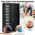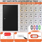 Key Lock Box With Side Opening: Key box is made of heavy gauge steel and finished with a black scratch-resistant powder coat to protect it from rust and damage, extending the life of key box. The 0.8 mm steel plate thickness can withstand certain impact and pressure. Key box can store your keys and prevent others from accessing. You can take the small opening on the side of the key box as a "drop box". If you lend the key to someone else, they can drop it off from this place when they're done Key Safe With Additional 16 Side Hooks And Key Tags: The key organizer that holds 225 keys also has 16 hooks on the side. The key lockbox is suitable for storing various car keys, door keys and some small valuables. The key safe has numbered key hooks and 241 colored key tags, and you can mark the key tags separately according to the purpose of the keys. After classifying and managing the keys, you can easily find the key you are looking for and save your time Key Box With Two Emergency Keys: The key lock box comes with 2 emergency keys, which makes it easy to open and close the door. Attention: Don't put the emergency key in the key box. There is a unique number on the key hole of the key box. If the emergency key is lost, you can contact us in time. You can put some desiccant in the key safe to avoid moisture, which can perfectly protect your keys or some small valuables Install Key Cabinet To The Wall: Key cabinet comes with 4 pre-drilled holes on the back, you can easily bolt it to the wall with mounting bolts to prevent tipping and add safety. External dimensions(W×D×H): 13.8×3.9×23.6 inch / 35×10×60 cm. This key lock box is compact and perfect for homes, hotels, offices, valet parking stations, apartment buildings, parking lots, car dealerships, car repair shops, etc What You Will Get: A 225 keys key lock box with additional 16 side hooks, two emergency keys, a set of key tags, a set of mounting bolts and a user manual. If you have any questions, you can contact us and our professional customer service team will solve your problems within 24 hours. Your satisfaction is very important to us