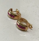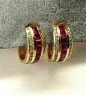 2.25Ct LabCreated Diamond Ruby Hoops Huggie Earrings in 14kt Yellow Gold Finish