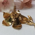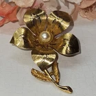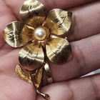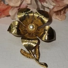 This stunning Victorian brooch is a timeless piece of beauty. Its delicate flower shape and gold plating make it the perfect accessory for any occasion, whether it be a special event like Mother's Day or a unique everyday look. The brooch features a freshwater pearl and enamel detailing, adding to its charm and vintage appeal. The piece is perfect for those who appreciate art and beauty, and its intricate details make it a true statement piece. Its yellow gold filled metal and unknown base metal add to its durability and longevity. This brooch is a must-have for any jewelry collection and is sure to impress. #2299, 19th CENTURY, VICTORIAN BROOCH, FRESHWATER PEARL, GOLD PLATED, RARE TO FIND, VERY UNIQUE VICTORIAN PIECE WITH A STUNNING FRESHWATER PEARL, 2"INCHES IN LENGTH. EXQUISITE PIECE, IN EXCELLENT CONDITION.