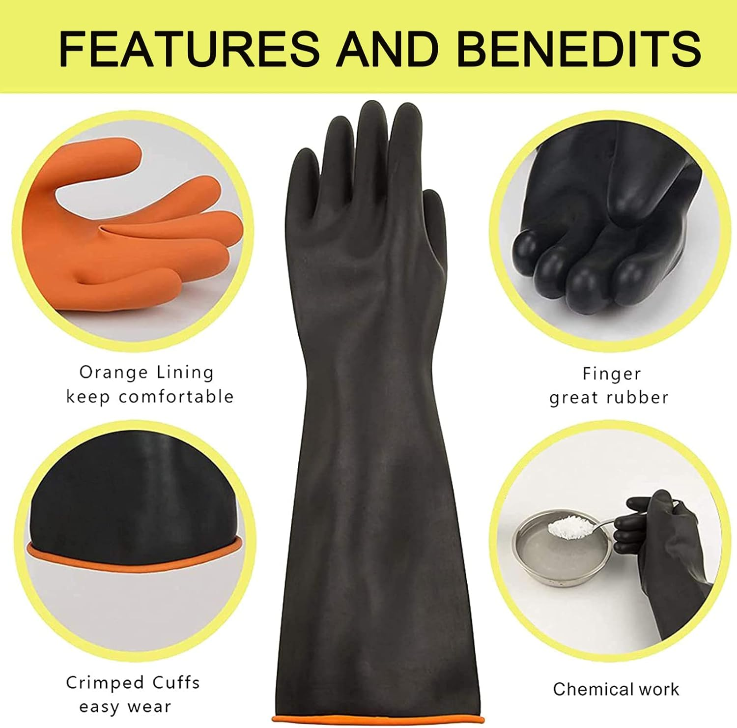 Store New Arrivals Add to Favorite View Feedback Contact 22" Latex Chemical Resistant Gloves, Reusable Heavy Duty Long Rubber, Dishwashing, Industrial Safety for Men, Forearm Protection Waterproof Resist Strong Acid, Alkali, Oil, XL Size Description Department Unisex Adult Product Dimensions 1.97 x 1.97 x 0.39 inches; 10.58 ounces Country of Origin China Manufacturer Nobgum Product Description 22" Reusable Heavy Duty Long Latex Chemical Resistant Safety Gloves High quality natural latex has excellent chemical resistance and tear resistance. Smooth inner layer for easy wearing and keeping your hand comfortable. Characteristic: resistance to acids and alkalis, resistant to wear, long durability, strong tenacity, tear resistant. The ideal thickness offers fantastic safe protection while remaining sensitive to touch. Premium Latex Gloves - A Good Helper in the Chemical Industry Multipurpose latex gloves, suitable for machine repair, garden work, chemical treatment, laboratory and daily household cleaning. ABOUT US We offer the best prices around on high quality products. Our E-store includes media such as books, movies, music and games while offering electronics, toys, sporting apparel, clothing, tools, general home, garden items and more. SHIPPING We are always working hard to ensure your package arrives as soon as possible. Please understand that some factors like weather, high postal traffic, and the performance of shipping companies are outside of our control. We offer free shipping to the lower 48 states and ship within 2 business days of payment, usually sooner. We do not accept P.O. Boxes. Please provide a physical address. RETURNS We offer a 30-Day Return Policy on items which you are not completely satisfied with. You have the option for a full-refund or an exchange of the item. No returns are available on items shipped outside of the USA. PAYMENT We accept PayPal. CONTACT US This page content is yet to come Please ad us to your favorite seller and visit again later Thank You CUSTOMER SATISFACTION We try our very best to make sure every customer is completely satisfied. If there's a problem, message us! We're happy to help.