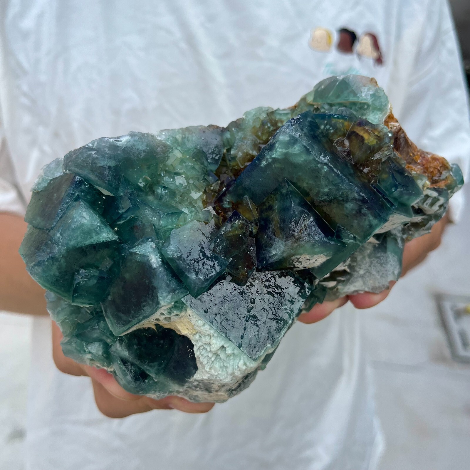 $ 156.8211.6lb Natural Green Fluorite Cube Quartz Crystal Cluster Mineral Specimen