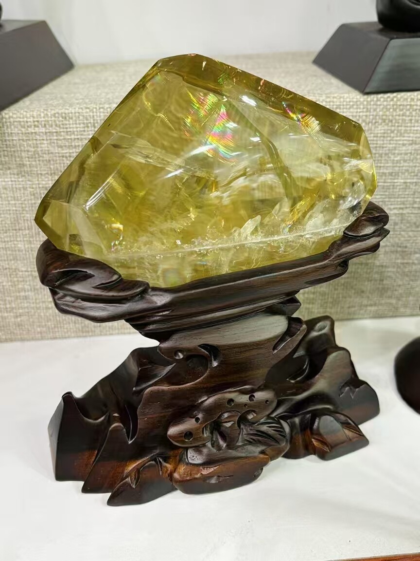 2.2lb Natural Rainbow Citrine Quartz Crystal Specimen with Stand for Reiki Decor