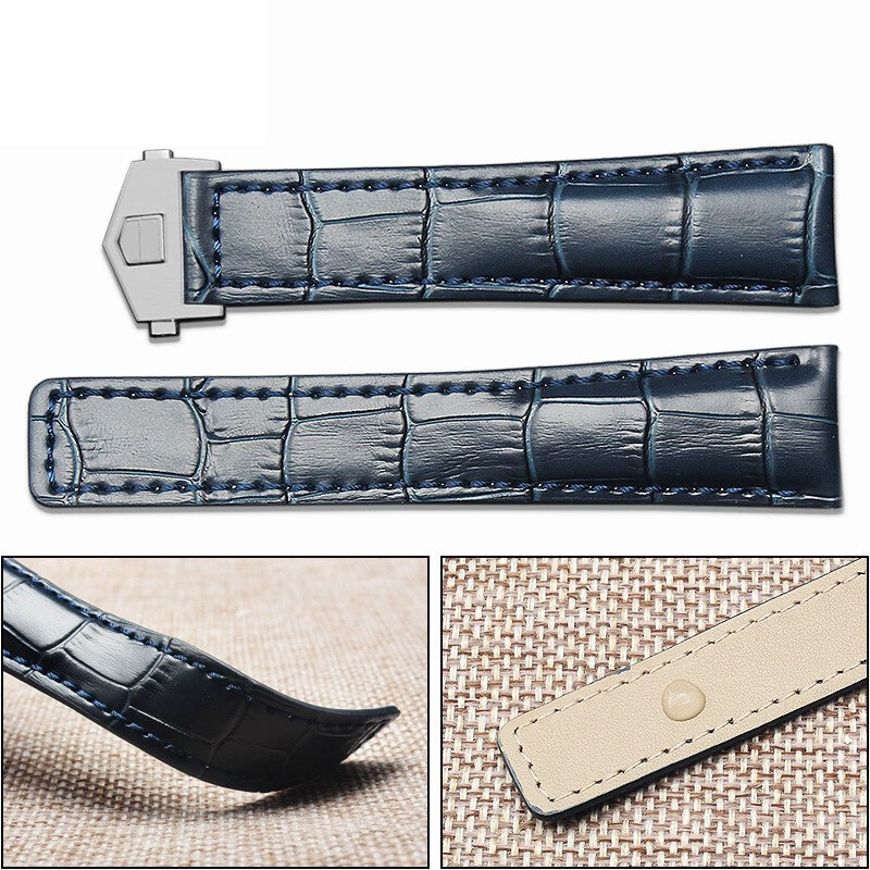 The item for sale is a brand new strap made of the finest Genuine Preimium Italian alligator pattern calf leather in. It will fit the Tag Heuer Carrera Twin Time, Monaco, Formula F1, Aquaracer or Chronograph watch with deployment clasp. This Strap is made of genuine premium Italian top quality leather with alligator decor and with stitching and thick 6mm padding with genuine leather soft nubuck lining on the back side of the strap with sweat resistant with for long lasting and durability of the strap with extra comfort, nice, classy and expensive look and make it look just like the original strap on the watch. It will fit up to an 8-8 1/2 inch wrist. It will fit Tag Heuer watch with 20mm at the buckle. At Lugs 22mm You get 1 set (2) of leather strap and it comes with 2 free spring bars.