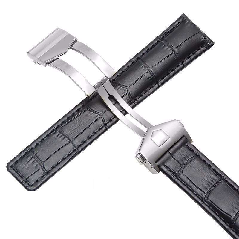 $ 17.8820mm Black Grain Leather Watch Strap with Deployment Buckle for Pilot Style