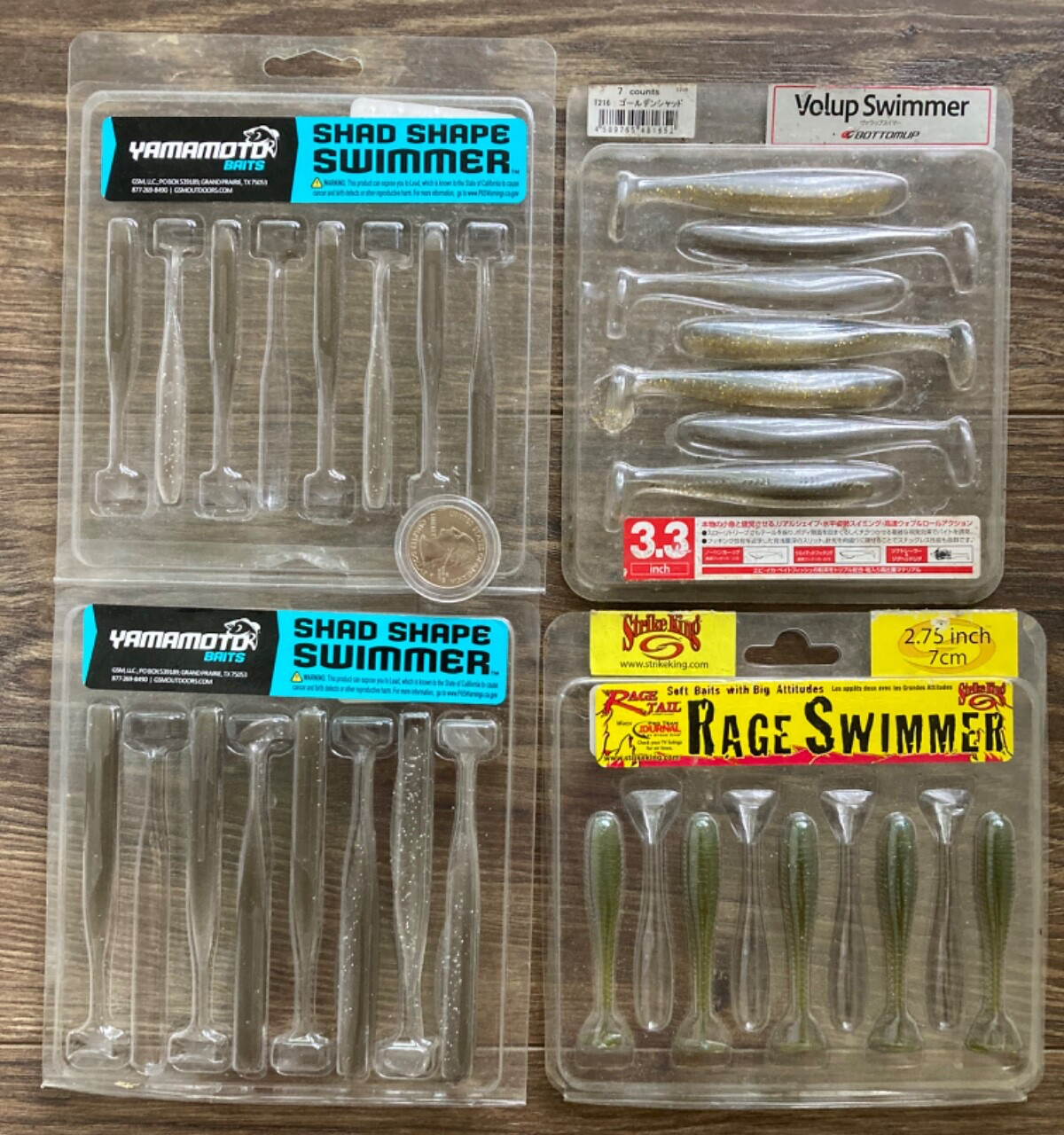 HOOKED-ON-VINTAGE IS PLEASED TO OFFER THIS LOT 22 NEW SWIMBAITS BERKLEY POWERBAIT MIX FISHING LURES YAMAMOTO BAITS SHAD SHAPE SWIMMER, STRIKE KING RAGE SWIMMER VOLUP SWIMMER BOTTOM UP. ORIGINAL NEW IN PACKAGES SWIMBAITS. LOT 22 NEW SWIMBAITS MIX FISHING LURES. MIX OF STYLES/COLORS/SIZES. SWIMBAITS FISHING LURES. YOU ARE BUYING THE FOUR STYLES (3” - 4”) NEW IN OPENED PACKS AS SHOWN IN PHOTOS. SEE OUR OTHER ITEMS FOR IN OUR EBAY STORE, WE LOVE TO COMBINED THE SHIPPING, SO IF YOU A COLLECTOR, CHECK THESE OTHER LISTING - SO, WIN AS MANY AS YOU WISH. SOLD AS-IS. SUPER-SIZED PHOTOS SHOW THESE ITEM, VERY WELL. COMES FROM A NON-SMOKING ESTATE. READY TO ENJOY! COMES FROM A NON-SMOKING HOME. WE DO COMBINED SHIPPING TO SAVE YOU MONEY. CHECK OUR POSITIVE FEEDBACKS AND BID WITH CONFIDENCE! WE CAN COMBINED SHIPPING TO SAVE YOU MONEY, SO BID ON AS MANY AS YOU WOULD LIKE FOR YOUR COLLECTION.