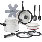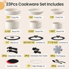 4 Removable Handles: Our removable cookware set has four removable handles, which can solve the trouble of not having enough handles. Two of the short handles can be used for saucepans or as you see fit. Remove the handles to easily stack pots and pans for storage, saving up to 70% space Universal Lid Design: Our 3 -in-1 pan lids of kitchen cookware set with vent comes in 3 various sizes. two universal lid fit pans & pots 7''-7.8''-8.6'' and pans & pots 8.6''-9.5''-10'' Multitasking Cookware Set: One set solves multiple needs, can be used as tableware and grill pan, and can be stored in the refrigerator with a freezer lid. Removable handles bring it to the table with just a click. Experience 5X superior non-stick cooking with minimal oil,food just slides off smoothly. All Stoves Use: Our cookware supports induction, gas, electric, and ceramic, and oven safe up to 550°F. Easy to Clean: removable pots and pans set has a ceramic nonstick design throughout for effortless cleaning and is dishwasher and handwash safe What You Get: This cookware set includes 11''/9.5''/7.8''frying pans, 5.1QT/3.3QT/1.8QT sauce pans, 11'' silicone lid, 7''-7.8''-8.6'' universal silicone lid, 8.6''-9.5''-10'' universal silicone lid, detachable side handle*2, detachable handle*2, pot protector*5, insulation mats*2, 7'' fridge storage lid, utensil set Guaranteed Customer Satisfaction: Each cookware passes a professional and strict quality inspection. If you receive any defective product due to delivery or encounter any problem while using the saucepans, please feel free to contact us