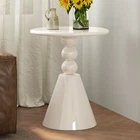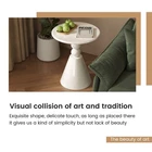 23" Round End Table, Modern French Side Table with Pedestal Base, Small Round Accent Table for Living Room, Bedroom, or Sofa Side, Cream White Elegant French-Inspired Design: The unique silhouette resembles an inverted wine glass, giving this end table a refined and sophisticated look. It’s the perfect blend of vintage elegance and modern simplicity—ideal for French country, romantic, or contemporary interiors. Smooth Round Tabletop: The 22.83-inch round surface is perfect for placing coffee cups, books, or decorative pieces. Its smooth curves and rounded edges are not only visually pleasing but also help reduce accidental bumps, making it safer for homes with kids. Stable Pedestal Base for Strong Support: Supported by a wide 15.74-inch base, this round side table remains stable and secure, even on carpeted or uneven flooring. The thoughtful design minimizes wobbling and enhances durability. Versatile Usage Across Spaces: With its stylish and compact form, this round end table is a functional addition to any room. Use it as a sofa side table, bedside nightstand, or even a hallway accent piece—its charm shines anywhere. Easy to Assemble and Maintain: Made from quality engineered wood and finished for easy cleaning, the sofa side table can be assembled in just minutes. The waterproof surface resists daily spills and can be wiped clean with minimal effort.