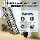 12FT Foldable Ti-Mg Alloy/Alloy Steel Attic Ladder 【Professional Build Quality】 🔧 Built to last, this attic ladder is crafted from durable Titanium-Magnesium Alloy/Alloy Steel and supports up to 2300 lbs/2204 lbs —enough for six adults! Its S-shaped reinforced frame and rust-proof treatment deliver outstanding stability and long-term durability, resisting wear and wobble even with regular use. 【Height-Adjustable Design】 📏 Fully extended, this attic ladder reaches 118" in height and 133.8" in length . When folded, it stores neatly at just 24×28" , saving valuable space. The pull-down system supports height adjustment , so it fits a variety of ceiling heights—no more worries about size mismatch! 【Easy Installation】 🛠️ Comes with clear step-by-step instructions. With two people, installation is a breeze: simply remove 2 bolts/nuts to detach the ladder, hang it on the bolts, then secure the spring mechanism with nuts. Folding the attic ladder back up is quick and simple. 【Safety & Smart Details】 ✅ Designed with safety in mind, this attic ladder features anti-slip grooved treads and base pads for secure footing. The pull-down system includes safety handrails and locking latches to keep the ladder firmly in place once deployed—so you can use it with confidence every time. 【Versatile Use】 🏠🔧 No tools required—easily extend or retract this attic ladder by hand. Ideal for barns, attics, garages, and tiny homes , especially where space is tight. It improves attic accessibility , adapts to your height needs, and helps keep your space organized and tidy. Install Steps Step 1 Loosen the 4 screws (2 screw per side) that fix the steps and take down the entire steps. Step 2 Place the frame where you want to install and mark the position of 8 drill holes. Step 3 Use the expansion screws to fix the frame on the wall. (New version and rails need to be installed separately) Step 4 Install the 4 screws(unscrewed in step1)on the frame. Product Details Wall-mounted Type This attic ladder is wall-mounted. It cannot be installed on the ceiling and pulled down from the ceiling, but should be installed on a vertical wall or vertical plane. Thickened S-bend Made of high-quality carbon steel pedals and Al-Mg alloy, this ladder is corrosion-resistant and capable of holding up to 2204 lbs. Rubber Anti-slide Foot Pad Non-slip rubber pads ensure stability and prevent slipping, making it safe to use.And also it will not spoil the floor of indoor. Specifications Model A Model B Material Ti-Mg Alloy Alloy Steel Color White & Black White & Black Installation Method Wall-mounted Wall-mounted Gross Weight 66 lb 88 lb Load Capacity 2300 lb 2204 lb Pedal Thickness 2.5cm / 0.9in 2.5cm / 0.9in Pedal Width 13.5cm / 5.3in 13.5cm / 5.3in Outer Frame Size 23.6×27.56in 23.6×27.56in Expanded Vertical Height 118in 118in Expanded Extended Length 133.8in 133.8in Package Includes • 1× Wall Mounted Folding Ladder • 1× Pull Rod • 2× Armrests • 12× Screws • 1× Wall Mounted Folding Ladder • 1× Pull Rod • 2× Armrests • 12× Screws