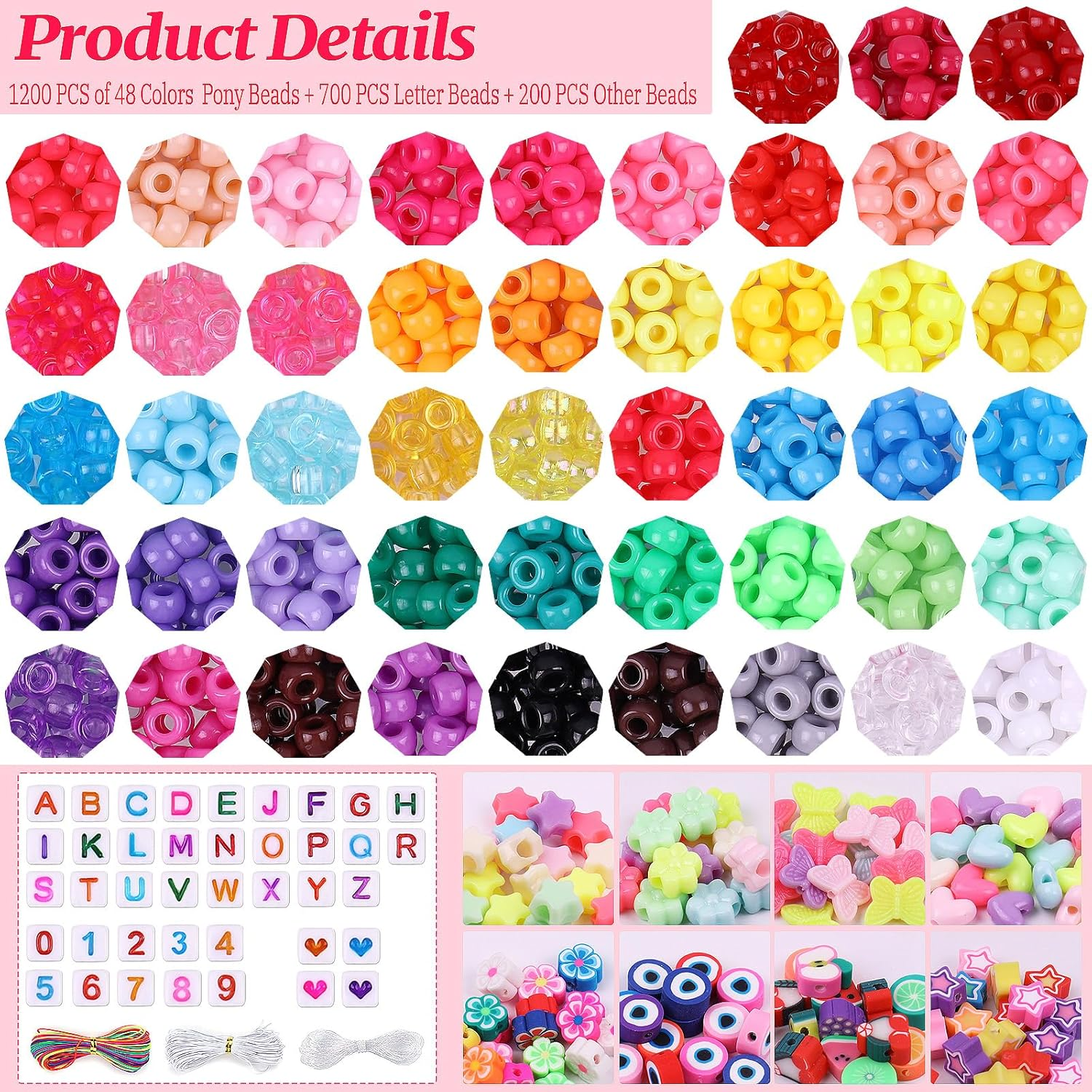 1200Pcs Colorful Heart Star Butterfly Pony Beads for DIY Jewelry Crafts