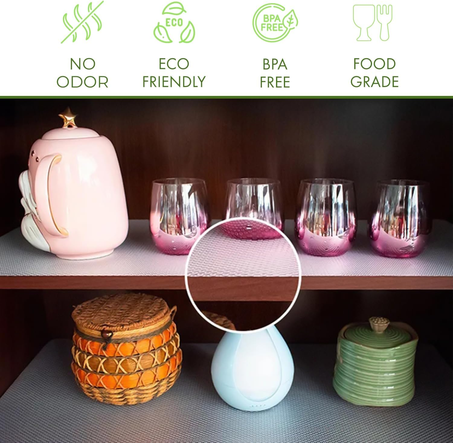 Store New Arrivals Add to Favorite View Feedback Contact 23.6 INCHES X 20 FEET (240 Inches) Non-Slip Shelf Liner, Original Smooth Shelf Liner, EVA Kitchen Liner, Non-Adhesive Liner, Stain-Proof Shelf, Drawer, Cabinet Liner Clear Description Item model number HU-XI-201 Unit Count 3.65 Square Feet Number of Pieces 1 Number of Items 1 Color Clear Pattern Polka Dot Material Ethylene Vinyl Acetate (EVA) Theme Polka Dot Item Weight 2.89 pounds Is Stain Resistant Yes Recommended Uses For Product Shelf Size 23.6"W x 236"L Special Feature Slip Resistant, Removable, Non-Adhesive, Washable Product Dimensions 236"L x 23.6"W Product Care Instructions Wipe with Damp Cloth MANUFACTURED IN TURKEY: Our product was manufactured in Turkey. It was made out of high quality EVA Material. It has a non-slip feature that will prevent your items from slipping. Can be used anywhere without it slipping. Nothing can slip when they are placed on our product. WASHABLE: You can easily wash any stains and this product doesn't leave any stain marks. You can have your shelf hygiene at its finest. Protect your cabinets with the quality and the features of our product! CAN BE USED ANYWHERE: Our product is mainly used in shelves. But you can use it wherever you need them. If we were to give examples, you can use it in shoe racks, drawers, cabinets, and refrigerators! EASILY INSTALLED: You can easily trim the liner with a household scissor to adjust the size you want. Place the liner down in your drawer or cabinet and trim off the part you want to place. Our liners are non-adhesive and easily removable. PREMIUM QUALITY: Our mission is to bring the quality and variety to you. We trust the quality of this product 100% and that you will be satisfied with it. Make your place beautiful with an unseen quality. We hope you enjoy this product as much as we enjoy bringing it for you. Product Description ABOUT US We’re dedicated to bringing you great deals on quality products. From home décor and garden essentials to tools, hardware, and pet accessories, our store has something for everyone — all at prices you’ll love. SHIPPING We ship all orders directly from the USA for fast, reliable delivery. Most items ship within 1 business day and include free shipping to the lower 48 states. For international orders, we use eBay’s Global Shipping Program — simply continue checkout to see costs, duties, and taxes for your country. FREE RETURNS We offer a 30-Day Return Policy on items which you are not completely satisfied with. You have the option for a full-refund or an exchange of the item. CUSTOMER SATISFACTION We do everything we can to ensure every customer is 100% satisfied. If something isn’t right, just send us a message — we’ll make it right quickly!