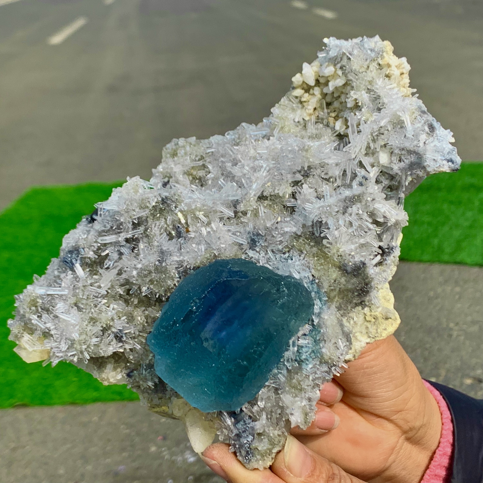 $ 51.22Rare 458G Transparent Blue-Green Fluorite Cube Crystal Specimen from China