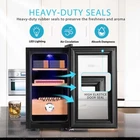 23L Electric Cigar Humidor with Spanish Cedar Wood Shelves About the product: HEAVY-DUTY SEALS - The magnetic door is made of transparent tempered glass that enables users to check the humidity and the collections without opening the door; It comes with heavy-duty rubber seals to preserve the freshness and aroma of your fine rolls; SPANISH CEDAR WOOD - The cooler humidor features 2 removable shelves and a drawer that are made of solid Spanish cedar wood; The Spanish cedar wood absorbs dampness and humidity; The humidor maintains the humidity level to keep the original flavor and aroma; This spacious humidor cabinet can store up to 150 amount AIR CIRCULATION FAN - The built-in fan on the back circulates the air in the cigar box, so that the temperature and humidity of the upper and lower layers are as even as possible; It’s super quiet and has a noise output of 30-35 (dB); The 3-side air vents can protect the fan and speed up the heat dissipation process; There is a filter outside the cooling air inlet to prolong the service life of the product PRECISE TEMPERATURE CONTROL - The touch screen on the door controls the interior temperature, which can be adjusted between 54-73℉; The humidor uses semiconductor refrigeration technology, meaning that it just cools and doesn't heat; The humidor is equipped with an accurate electronic thermometer TEMPERED GLASS DOOR AND DIGITAL HYGROMETER - The tempered glass door serves as a large transparent window, and it efficiently reduces the impact of external UV light; With the built-in LED light, which dissipates low amounts of heat, the humidor allows you to observe your collection and the internal humidity levels easily; The humidor includes an digital hygrometer as well, which makes it easy for everyone (even beginners) to set the perfect humidity level Product Details: Season Seasoning your wood is a must. It is best to season your wood shelves and drawers before putting your rolls into the humidor. This ensures that the wood is at ideal relative humidity and does not absorb humidity from your collection. Once the cedar is seasoned, it holds very well. Spanish Cedar Wood The two shelves and drawer are made of premium Spanish cedar. It can help mediate humidity and give your rolls an excellent cedarwood aroma. The gap in the middle of the partition facilitates air circulation and the uniformity of humidity and temperature between the upper and lower levels. Precise Temperature Control After turning on the humidor, the LED display will first show the ambient temperature and then the internal cabinet temperature. The temperature is controlled by the touch screen. The precise temperature control makes it easy for everyone (even beginners!) to adjust temperatures. Product & Package Information: Material: steel plate, tempered glass, Spanish cedar board Capacity: 150 amount Rated Voltage: AC 120V 60Hz Sound volume: 30-35 (dB) Power: 70W Spanish Cedar Wood Tray x 1 Temperature range: 54℉-73℉ Spanish Cedar Wood Shelves x 2 Dimension: 10 x 17.8 x 20 inches Humidor Cabinet x 1 Volume: 23 L / 0.8 ft3 Plastic Water Box x 1 Why choose us? Premium quality / Precise temperature / Digital hygrometer / Exquisite craftsmanship When your collections are stored appropriately at optimal temperatures and humidity levels, they will ferment and mature slowly, which will enhance their taste and flavor. This Cooler Humidor Cabinet can help you store your rolls and keep them in magnificent condition. You can stop worrying about the temperature and humidity of the environment surrounding your rolls. Your -appreciating husband, son, or father would love this gift! The package includes an ABS water box humidifier. These humidifiers are often soaked in distilled water. For better effects, you can also add humidity control packs instead of water. The built-in fan works like the one in a gaming PC. The fan is so quiet that you to put the humidor anywhere, including your bedroom, without causing noise-related disturbances in the environment. There is also a LED light in the cabinet. It's controlled by a touch switch outside the glass door. You can easily check your rolls and humidity levels without opening the door. The Spanish cedar, black stainless steel frame, and excellent quality craftsmanship make the humidor look lovely. It fits right into your bar, office, den, or bedroom. It is recommended to install the cooler in an area where the ambient temperature is between 65-79℉. The internal cabinet temperature is affected by the set temperature and ambient temperature.