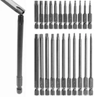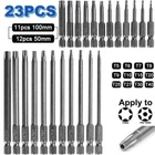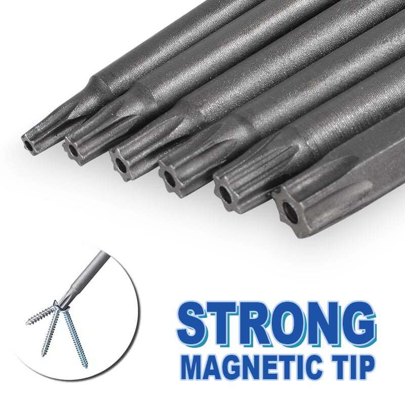 Product D escription 23PCS Torx S crewdriver Drill S et 1/4" H ex S hank 50mm 100mm Product Characteristics High Q uality I ndustrial G rade M aterials: The Torx screwdriver bit set is made of high-quality S2 alloy steel with a special heat treatment process to increase the torque and full hardness of the bit, and it has good wear resistance and is more durable than regular Torx screwdriver bits. High P recision M achining T echnology: The product adopts CNC precision machining technology to ensure the accuracy of the product, so that the drill can withstand the instantaneous impact of large torque pneumatic tools, which greatly improves the service life of the product itself. Magnetic: The magnetic Torx screwdriver drill set can quickly and easily adsorb screws, greatly improving your work efficiency. Repeated use does not diminish the magnetic force. Suitable F or A V ariety O f P ower T ools: The 1/4" hexagon handle allows it to accommodate a wide range of power tools, allowing you to quickly change chucks. Suitable for electric drill, air drill, electric screwdriver, manual screwdriver and so on. A W ide R ange O f U se S cenarios: It can be widely used in automobile, home, industrial and other maintenance, and can also be used in other screw drives. Mechanical P rinciple D esign: Strong torque, high torque, after contact with the screw head, the impact reaction force generated by the impact screwdriver is absorbed by the torque part, effectively preventing the damage of the tool head. Straight and concentric, tight bite. Product Specification Status: 100% Brand New Material: S2 A lloy S teel Shank T ype: 6.35mm/ 1/4" H ex S hank 12PCS: Length: 1.97"/50mm Cutter H ead S pecifications: T5, T6, T7, T8, T9, T10, T15, T20, T25, T27, T30, T40 11PCS: Length: 3.94"/100mm Cutter H ead S pecifications: T6, T7, T8, T9, T10, T15, T20, T25, T27, T30, T40 Package Included 12PCS × 50mm Torx Screwdriver B it 11PCS × 100mm Torx Screwdriver B it Attention P lease 1. Please allow manual measurement error of 1-3mm. Make sure you don't mind before you buy. 2. Due to lighting effects, brightness contrast Settings of the display, etc., there may be some slight differences in the hue of the picture and the actual item, please make sure you don't mind.