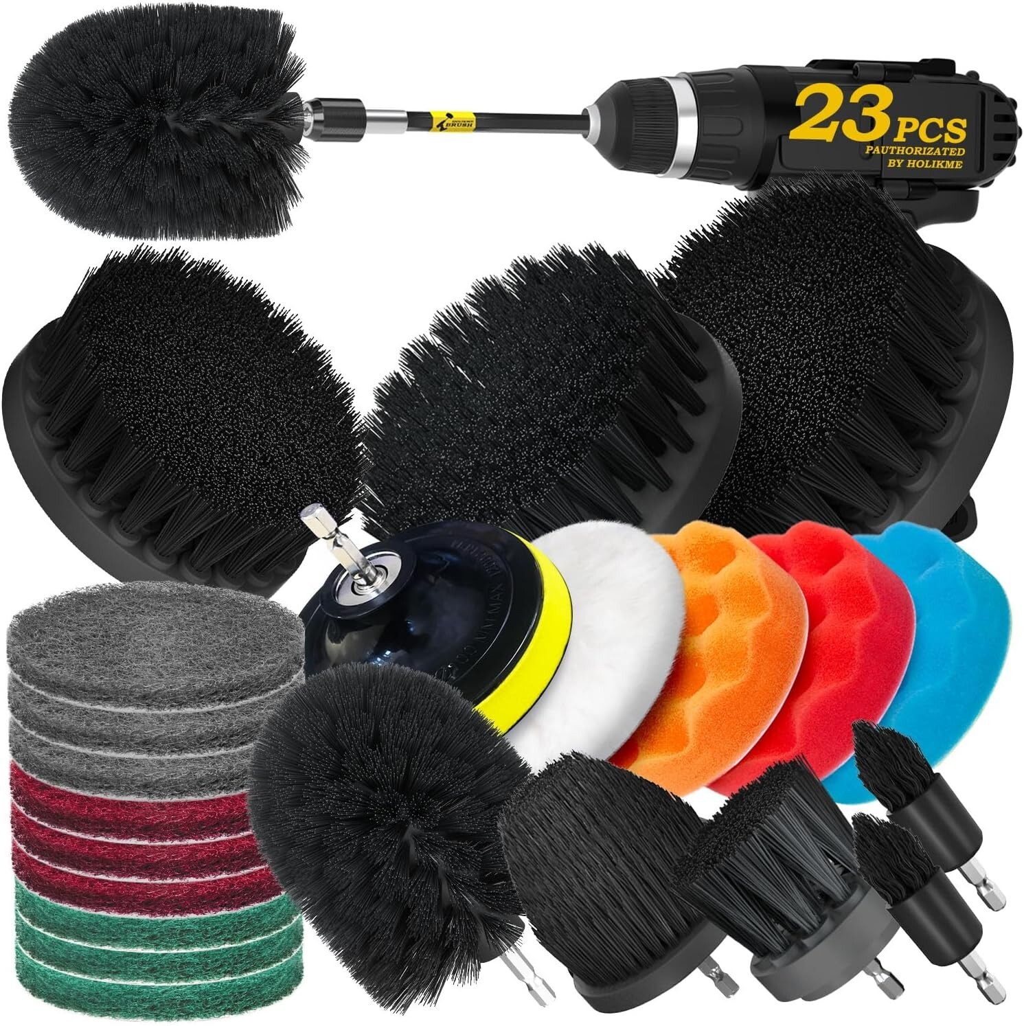 This drill brush set is a game-changer for deep cleaning! The variety of brush shapes and stiffness levels makes it perfect for tackling grime in every corner—from carpets and car interiors to tile and sinks. The sponges and wool pad add polishing power, while the extension rod helps reach tough spots. Durable, versatile, and saves so much elbow grease. A must-have for anyone who loves sparkling surfaces without the hard work!