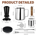 23pcs Premium Espresso Tamper Barista Set - Perfect for Both Beginners and Seasoned Baristas Which Simple to Use and Easy to started With, Ideal for Coffee Lovers, This Kit Suits Cafes, Kitchens, Hotels, and Various Events, Help Them Create the Best Flavored Espresso Packing Includes: 1 x 51mm espresso tamper 1 x 350ml milk pitcher 1 x pad 1 x pin 1 x silicone tamping mat 1 x espress stirrero 1x coffee dispenser 1x 16pcs unique decorative stencils 【51mm Espresso Set】- 23pcs professional espresso tools set, packaging includes 1 *51mm espresso tamper, 1*304 stainless steel 350ml milk pitcher,1*pad, 1*pin,1*spoon,16pcs unique decorative stencils, 1*espress stirrer, 1* coffee dispenser 【Premium Materials 】- Our 51 mm espresso set are main made of food safe 304 stainless steel, high-temperature resistance, corrosion resistance, resistance Acid and alkali resistance, not easy to rust, for it is dishwasher safe, you can use it with confidence for a long time 【51mm Espresso Tamper 】- Our espresso tamper base diameter is 51mm, it features a built-in spring mechanism, requiring no additional adjustments, and with unique depth marking scales, whether you are a coffee lover or a professional barista, an be easily controlled 【Ideal Gift for Coffee Lovers】- Ourspresso kit, perfect for both beginners and seasoned baristas, which simple to use and easy to started with, ideal for Coffee Lovers, this kit suits cafes, kitchens, hotels, and various events, help them create the best flavored espresso 【After-sales 】- This espresso kit set includes various tools to meet your coffee making needs and enhance your coffee making experience, is committed to providing high-quality, our professional coffee equipment for coffee lovers and baristas. If you have any concerns or dissatisfaction, please feel to via