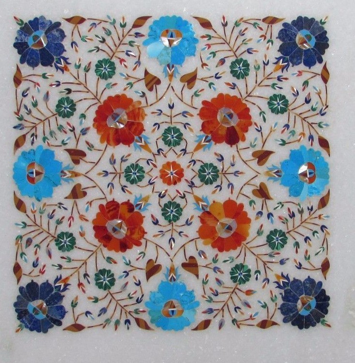 Year Manufactured: 2023 Pattern: Floral Brand: Handmade Shape: Square Room: Bedroom, Hallway, Living Room Item Length: 23 inches Care Instructions: Clean With Damp Cloth Item Height: 0 Finish: Polished Type: Coffee Table Packaging: Export Packing Handle Finish: Polished Item Width: 23 inches gtin13: Does not apply size: 23 x 23 Inches Model: Table Top Features: No Assembly Required, Removable Top Thickness: 20 mm to 30 mm Color: White Indoor/Outdoor: Indoor & Outdoor Personalized: Yes MPN: Does Not Apply Item Weight: According To Size Assembly Required: No Department: All Number of Drawers: 0 Time Period Manufactured: 21st Century (2000-now) Material: Marble , Semi Precious Stones Original/Reproduction: Original UPC: Does not apply Country/Region of Manufacture: India Product Line: Handmade Handle Material: Marble Style: Arts & Crafts/Mission Style Additional Parts Required: No