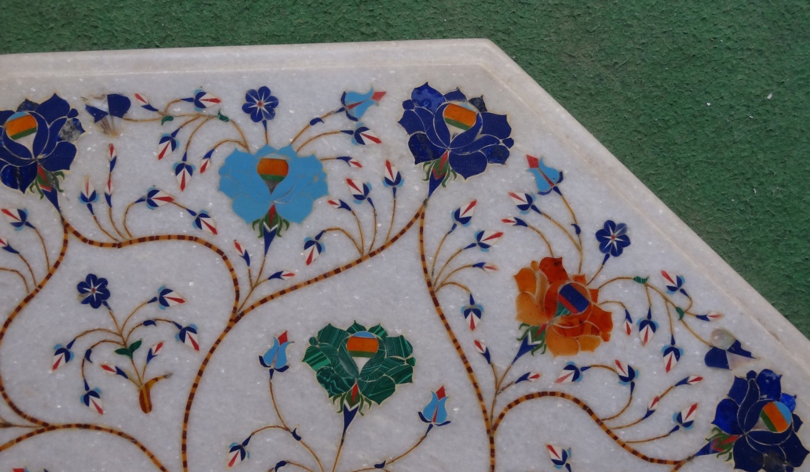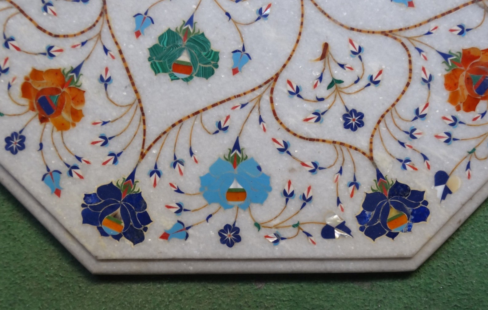 $ 488.0621" Handmade Marble Table Top with Pietra Dura Semi-Precious Stone Inlay