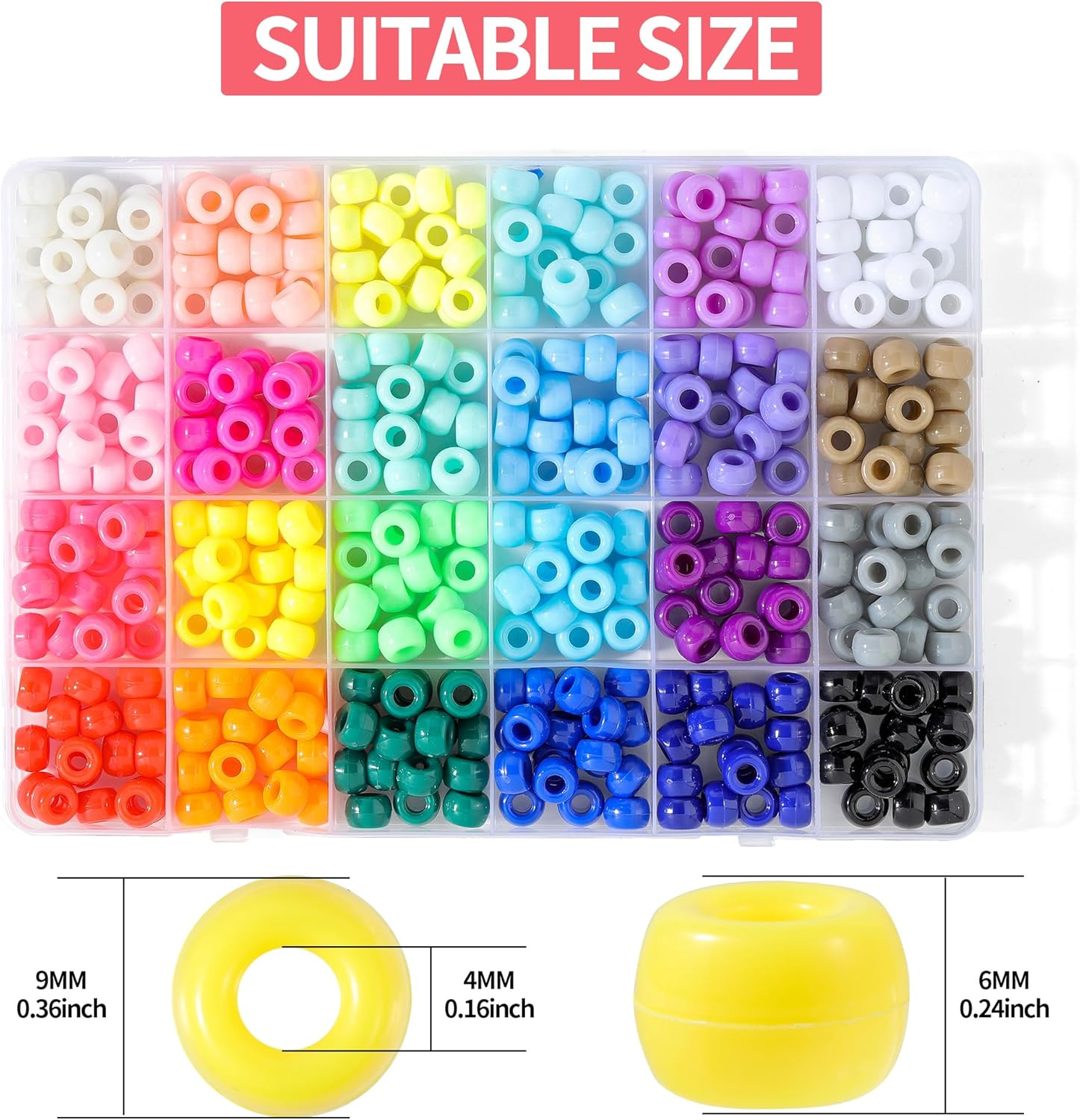 Suitable size: 6 × 9 mm/2.36 × 3.54 inch; Hole diameter: 4mm/1.57 inch, made of plastic, lightweight and sturdy, ideal for threading. Sufficient quantity: 24 Colors 400 pieces pony beads in a box. The beads are neatly arranged in each grid, making it very easy to find the color you need! High-quality material: The pony beads are made of acrylic plastic, smooth surface and exquisite appearance, excellent for DIY crafts. Wide applications: The pony beads can be used to make a variety of DIY crafts,Widely used in jewelry making, bracelets, accessories, decorations, pendants, Christmas decorations and etc. Satisfactory service: We believe our pony beads will get your favorites! If any question, please contact with us, we will response you within 24 hours. We designed these pony beads to meet the requirements of daily DIY making, there are 24 colors 400 pieces letter beads in a box, the pony beads have smooth surface and beautiful appearance. Ensuring the high quality of the pony beads is our consistent purpose! We are committed to providing our customers with high quality products and services. We believe that you will like our pony beads. If you have any problems with our products, please feel free to contact us, we are happy to learn from your experience and make our products better.