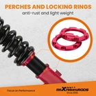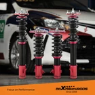 maXpeedingrods Canada Store Home About maXpeedingrods View Feedback Contact Us WHY CHOOSE US 24 Damping Levels Coilover For Subaru Impreza WRX STI GDB GDA GD9 GGA 2000-2004 Description Introduction MXR-SLC based on MXR-SNA coilovers, which is also height adjustable but adds damping adjustment ability by a knob the top of the shaft. They are also made for street use, but the 24 level rebound damping control allows you the ability to perfectly dial in your coilover setup. You will experience better ride quality in all road conditions. Application For Subaru Impreza WRX 2000.08-2007.06 GDA GD9 GGA For Subaru Impreza WRX STI 2000.10-2004.06 GDB (RIM P.C.D.=100) For Subaru Forester SG 2003-2008 For Saab 9-2X 2005-2007 GGA GGE The Coilovers kit will " Lower your car " and DOES NOT keep to the Original Ride Height. Specification Top mounts: Pillow ball top mounts Damping: 24 levels rebound damping adjustable Adjustable height: Yes, lowering 1" to 3" Adjustable camber plate: Front only Spring rate Front: 9 kg/mm(504 lbs/in) Spring rate Rear: 7 kg/mm(392 lbs/in) Shock type: Twin tube Spring Preload: 7-10 mm Color: Red Package included Complete coilovers 2 front and 2 rear Dimension Size: 71*51*21 cm Weight: 29 kg Feature 1. Lowered height adjustment from 1" - 3" which allow lower center of gravity and also add a more aggressive stance. 2. A 24 rebound damping adjustment level allows you the ability to perfectly dial in your coilover setup. You will experience better ride quality in all road conditions. 3. Pillow ball top mount - It improves the steering feel and response. 4. Camber plate top mounts help to eliminate the need for a separate camber kit. 5. Twin-Tube structure allows sufficient stroke within the shock absorber. 6. Complete Suspension Kit of 4 Shock Absorbers & 4 Springs for an easy installation. 7. Separate height adjustment does not affect damper stroke. 8. Height can be adjusted with coilovers installed on the vehicle. 9. High Tensile performance spring - STRESS TESTED OVER 600,000 times while the spring distortion is less than 0.04%. Plus the special surface treatment improves the durability and performance. 10. Height Adjustment tools included. 11. Full rebuildable. Notice * High performance aftermarket parts; professional installation is recommended. * Please check our store for other auto parts you may be interested in. Other items you might also like Coilovers Coil Spring Shock Strusts For Mitsubishi Lancer (CX/CY) 2008-2016 24 Ways Adjustable Damper Coilovers For Lexus IS300 IS200 JCE10L GXE10 1999-2005 Street Coilovers Suspension For Nissan S13 Silvia 240SX 200SX 180SX 1989-1998 24 Damping Level Coilover For Honda Civic 4-door Sedan FA1 FA2 FA3 FA4 FA5 06-11 24 Ways Adjustable Damper Coilover For Honda Civic EJ EK EM 96-00 Acura Integra Pair Front Coilover Shock For Nissan S13 Silvia 180SX 200SX 240SX 1989-1994 Coilover Lowering Kit For Mazdaspeed 3 Mazda 3 BK 2004-2009 Mazda 3 BL 2009-2013 Coilover Spring & Shock For Honda Accord CG2 CG3 1998-2002 Acura TL CL 99-03 Coilovers Kit Coil Spring Struts For Mitsubishi Lancer CX/CY 2008-2016 Outlancer 24 Ways Adjustable Damper Coilover For Toyota Corolla E140 E160 E170 2014-2019 Coilover Lowering Kit For Toyota Celica 2000-2006 GT GTS ZZT230 1.8 VVTL-i 190 2 Pcs Rear Active to Passive Shocks Conversion Kit for Cadillac SRX 2004 - 2009 About MaXpeedingrods Shipping Policy Returns Policy