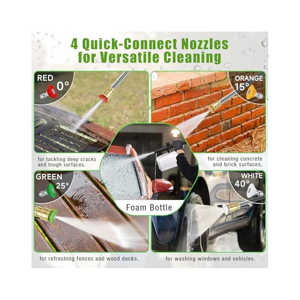 STORE NEW ARRIVALS ADD TO FAVORITE VIEW FEEDBACK 2.4 GPM 4200 PSI Electric Pressure Washer, Includes Foam Cannon & Nozzles Description High-Power Electric Pressure Washer – Restore Your Home’s Shine with Ease! This electric pressure washer delivers a powerful 4200 PSI and 2.4 GPM, making quick work of dirt and grime on driveways, cars, fences, decks, patios, and more. Equipped with a versatile 4-nozzle set and foam cannon, it offers a customized cleaning experience for every outdoor task. As a father and son caregiver, I understand the need for reliable tools that save time and effort, allowing you to focus on what truly matters – family. This pressure washer provides a value-for-money solution for maintaining a clean and welcoming home environment. Its robust design ensures long-lasting performance, giving you peace of mind knowing it's a dependable addition to your household toolkit. Spend less time cleaning and more time enjoying quality moments with loved ones. Experience the convenience and efficiency of a truly powerful cleaning tool, designed to make your life a little easier and your home a lot brighter. This washer offers a thorough clean without the hassle, and it’s a smart investment for any homeowner wanting to maintain their property with ease and confidence. Product Features Powerful 4200 PSI and 2.4 GPM Versatile 4-nozzle set Includes foam cannon Robust and long-lasting design Value-for-money solution Technical Specifications Pressure: 4200 PSI Flow Rate: 2.4 GPM Nozzle Set: 4-Nozzle Included Accessories: Foam Cannon ABOUT US We offer the best prices around on high quality products. Our E-store includes media such as books, movies, music and games while offering electronics, toys, sporting apparel, clothing, tools, general home, garden items and more. SHIPPING We are always working hard to ensure your package arrives as soon as possible. Please understand that some factors like weather, high postal traffic, and the performance of shipping companies are outside of our control. For shipping outside of the continental USA, we only use eBay's Global Shipping Program.The item is shipped to KY and then sent to the rest of the world. International customers are responsible for all duties and taxes. Continue to check out in order to calculate costs for shipping the item to your country. Messages regarding eBay's Global Shipping Program MUST be directed at eBay EXCLUSIVELY. RETURNS We offer a 30-Day Return Policy on items which you are not completely satisfied with. You have the option for a full-refund or an exchange of the item. No returns are available on items shipped outside of the USA. CUSTOMER SATISFACTION We try our very best to make sure every customer is completely satisfied. If there's a problem, message us! We're happy to help. WE ACCEPT Copyright © 2021 AutoDS. | All Rights Reserved