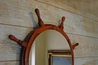Width: 24inches Height: 36 inches Depth: 1.75 inches New Handmade High Quality Wood and Mirror Finish ; Matt Natural Polish Material : Solid Wood and Mirror 8 Spoke Ship's Wheel Mirror with Solid Wood Size : 24" Ship Wheel mirror Weight : 3Kg Approx.. Have a Close Look Handicraft item not an antique Have a Close Look Thank you for visit !