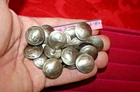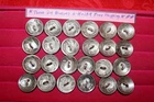 FREE SHIPPING! on this lot of 24 genuine old US Buffalo Nickels hand crafted into domed shank buttons. They are apx 3/4" in diameter. Copper shank securely soldered. They have been cleaned but not buffed. The buttons in the photos are the exact buttons you will receive should you be the buyer. 6 "heads" and 18 "tails" in this lot. Normal wear from nearly 100 years of use as coins. Buy It Now, 50$ includes FREE SHIPPING anywhere in the USA. Please check out my other lots and items including Buffalo Nickel Screw Back Conchos and Rings. Thank You and Good Luck! Rick