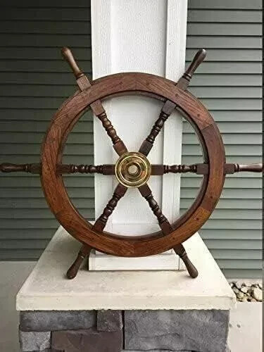 $ 36.5218" Nautical Wooden Ship Steering Wheel Pirate Décor Handmade Vintage Wall Boat