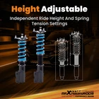 ZJPSS 24 Level Damper Adjustable Coilovers Lowering Coils For Scion xB 2008-2016 MaXpeedingrods T6 Coilovers Suspension Kit Front + Rear For Scion XB 2008-2015 Drops From 1 to 3 Inch From Factory Ride Height Full Threaded Absorber Tube Casing For Independent Height Adjustment. Rebound Damping Force Adjustable 24 Step To Adjust Soft / Hard Adjustment According To Your Preference. Durable Cold Wound Steel & Heat Treated Coils High Rigidity 55CrSi Steel Cold-bent Coil Springs - Over 600k Continuously Stress Test With 0.04% Distortion Rate. Specification Front Spring rate 8 kg/mm (448 lbs/in) Rear Spring rate 7 kg/mm(392 lbs/in) Front Spring length 200 mm Rear Spring length 140 mm Front spring inner diameter 62 mm Rear spring inner diameter 62 mm Adjustable camber plate Yes Damping adjustable Yes, 24 levels of rebound damping force Height adjustable Yes, lowering 25-75mm depending on the vehicle models Package included 2 Front + 2 Rear Warranty 2 Years MaXpeedingrods T6 lowering coilover, features 24 clicks adjustable rebound damping, independent ride height and spring tension settings, developed high viscosity index damping oil, 55CrSi steel cold-bent springs and decent outlook to provide perfect balance between comfort and performance. This suspension system is ideal for daily driving and occasional, light track use. High quality components are adopted to ensure product durability and stability. Each application is fully test fitted and completely road tested to guarantee all our customers perfect performance and comfort expectations. Features 1. Lowered height adjustment from 1" - 3" which allow lower center of gravity and also add a more aggressive stance. 2. Adjustable pre-load spring tension to reduce the shaking motion to a certain extent. 3. High Viscosity Index damper oil ---make damping more stable and smooth in wide temperature range. 4. 24 Clicks of Rebound Adjustments -- This allows you the ability to perfectly dial in your coilovers system. For a nice comfortable driving, set damping to full soft. For more spirited driving, set it to 16 clicks. For occasional track days, set it to full stiff. 5. CNC machined Aluminum top mounts and lockers -- - excellent strength, and save weight 6. High Rigidity 55CrSi Steel Cold-bent Coil Springs --- more than 600,000 times continuously test to assure it's high tensile strength. 7. All inserts come with fitted long rubber boots --- To protect the damper more well and be durable. 8. Advanced Twin-Tube Technology ---provides excellent handling & control characteristics for most driving conditions. 9. Anodized Shock Body With Anti-Corrosion Coating - Anodized Aluminum And Powder Coated Carbon Steel Parts. 10. Test for the best ---Every parts were tested on our professional machine before assembled and tested by our professional racers on road. 11. Clean room assembled ---maintain higher level of accuracy and reliability. Fitment For Scion XB 2008-2015 Specification - Damping adjustable: Available, 24 levels of rebound damping force - Shock structure type: twin -tube - Front top mount structure: Pillow ball - Rear top mount structure: OE top mount required - Camber adjustable: Not available - Height adjustable: Yes, lowering 25-75mm depending on the vehicle models - Spring Rate Front: 8 kg/mm (448 lbs/in) - Spring Rate Rear: 7 kg/mm(392 lbs/in) - Front spring inner diameter: 62 mm - Rear spring inner diameter: 62 mm - Spring length Front: 200 mm - Spring length Rear: 140 mm - Spring Preload advised: 7-10 mm - Color: Black body with blue spring Package included 2x Front coil-overs 2x Rear shock absorbers 2x Rear spring kits 1x Allen wrench 2x C spanners ★ 30-day Money Back & 24-Month Replacement Guarantee. Please feel free to contact us if there is any question. Height Adjustable Lowering Kit; 24 Clicks of Rebound Damping Force Adjustment; Independent Ride Height And Spring Tension Settings; High Rigidity 55CrSi Steel Cold-bent Springs; Anodized Shock Body With Anti-Corrosion Coating; Full 2 Years Warranty From Date Of Purchase. Other items you might also like Street GT35 GT3582 Universal Turbo Anti-Surge T3 Flange 4 Bolts Turbocharger Upgrade GT35 GT3582 Universal Turbo Anti-Surge T3 Flange 4 Bolts Turbocharger Engine Crankshaft & Connecting Rods for Toyota Highlander Camry 2.4L 2002-2009 Crankshaft Connecting Rods & Bearings Kit for Toyota 2.4L 2AZ-FE 13401-28030 Shipping Terms of Sales Payment Contact us All orders will be shipped within 1 business day after payment has been processed. For orders placed before 5:30 AM PST on business days, most items will be shipped out on the same day. All orders will be shipped with a tracking number via USPS, UPS, or FedEx Express and delivered within 2-6 business days We do not ship to P.O. Boxes, APO/FPO addresses, or Military Mail Boxes. Please ensure your address is confirmed by PayPal before checkout, as we only ship to confirmed addresses. 30-day free return and money back guarantee If you are not satisfied with your purchase, you can return the item with its original packaging to us for a full refund with no restocking fee. Please note that the return cost should be paid by the seller. One Year Unlimited Mileage Quality Guarantee If you receive incorrect items, items that are damaged during transportation, or defective items, we will accept returns and cover the return freight. Please note that the return cost should be prepaid by the buyer. After inspecting the faulty item, we will issue a refund of the return cost to the buyer. We offer a full refund or replacement for all faulty items, which includes the cost of original shipping. Please contact us before initiating a return. Our representatives will provide you with detailed instructions on how to proceed. Our guarantee covers only the cost of the item. We are not responsible for installation or other fees, such as labor, towing, additional repairs, or related expenses. We only accept payment through Paypal for all orders, which should be made t