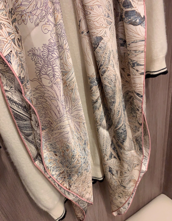 I love my gorgeous silk scarf which is more beautiful than the picture!! Exactly what I wanted and looks perfect with my sweater! I was amazed by how quickly it arrived— I got an excellent price on the scarf and on shipping, too! I will definitely keep this seller!! THANK YOU SO MUCH!!