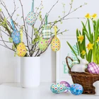 Store New Arrivals Add to Favorite View Feedback Contact Fast deliveries to the customer's home Quality customer service John Make the customers happy! 24 PCS Easter Eggs Hanging Ornaments, Buffalo Plaid Dots Easter Hanging Eggs, Easter Decorations, Colorful Decorative Eggs Baubles Ornaments, Spring Farmhouse Easter Tree Ornaments Basket Filler Decor Description 【COLORFUL EASTER EGGS】24 pcs Easter decorative hanging eggs come with colorful patterns of dots,Buffalo Check Plaid and flowers.And the vivid colors of springtime make Easter eggs imaginative and creative, to add to the atmosphere of Easter decor. Just enjoy your perfect Easter season! 【SIZE & PREMIUM MATERIAL】 Each egg measures approx 1.96" in height and 1.2" in width, mini size egg and looks quite cute. We use safe and environmentally-friendly foam and cloth materials. The workmanship is well-made, light but durable for you to hang on trees, not easy to fall or break,can be used and store for a long time. 【READY TO HANG】Hanging egg ornaments come with the strings already attached, ready to hang. The appearance of eggs is bright and vibrant and have beautiful printed pattern design that makes these eggs look lifelike.Which can catch people's eyes and make the party attractive. 【A MUST HAVE DECORATION FOR EASTER】Easter eggs are one of the symbols of Easter, these colorful foam Easter eggs can add a strong festive atmosphere to your Easter Day party. Also, as empty basket stuffers fillers, great toy and gift set for kids at holiday, DIY handicraft creation or Easter gifts for friends and family, to bring them good luck and enjoy a happy Easter time. 【WIDELY APPLICATION 】Colorful Easter hanging eggs not only can be hung on your Easter trees, doors, windows, mantels, wreaths to add festive atmosphere for home, classroom, office, spring parties. Additionally, they can also be used for arts and game activities for young children, such as Easter Egg hunt or handmade lessons to develop kid's creativity and play in painting learning. Product Description Easter Tree Hanging Easter basket filler Beautiful Easter home decoration Item Weight 1.06 ounces Package Dimensions 9.49 x 6.5 x 1.81 inches ABOUT US We offer the best prices around on high quality products. Our E-store includes media such as books, movies, music and games while offering electronics, toys, sporting apparel, clothing, tools, general home, garden items and more. SHIPPING We are always working hard to ensure your package arrives as soon as possible. Please understand that some factors like weather, high postal traffic, and the performance of shipping companies are outside of our control. We offer free shipping to the lower 48 states and ship within 2 business days of payment, usually sooner. We do not accept P.O. Boxes. Please provide a physical address. For shipping outside of the continental USA, we only use eBay's Global Shipping Program. The item is shipped to KY and then sent to the rest of the world. International customers are responsible for all duties and taxes. Continue to 'check out' to calculate costs for shipping the item to your country. Messages regarding eBay's Global Shipping Program MUST be directed at eBay EXCLUSIVELY. RETURNS We offer a 30-Day Return Policy on items in which you are not completely satisfied with. You have the option of a full-refund or an exchange of the item. No returns are available on items shipped outside of the USA PAYMENT We accept PayPal. CONTACT US This page content is yet to come Please ad us to your favorite seller and visit again later Thank You CUSTOMER SATISFACTION We try our very best to make sure every customer is completely satisfied. If there's a problem, message us! We're happy to help. WE ACCEPT
