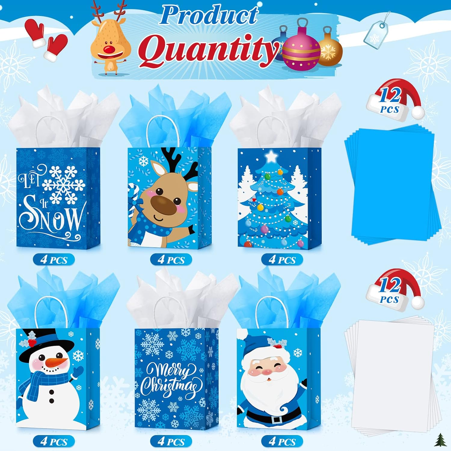24 Christmas Gift Bags Bulk with Handles & 60 Holiday Gift Tags Set