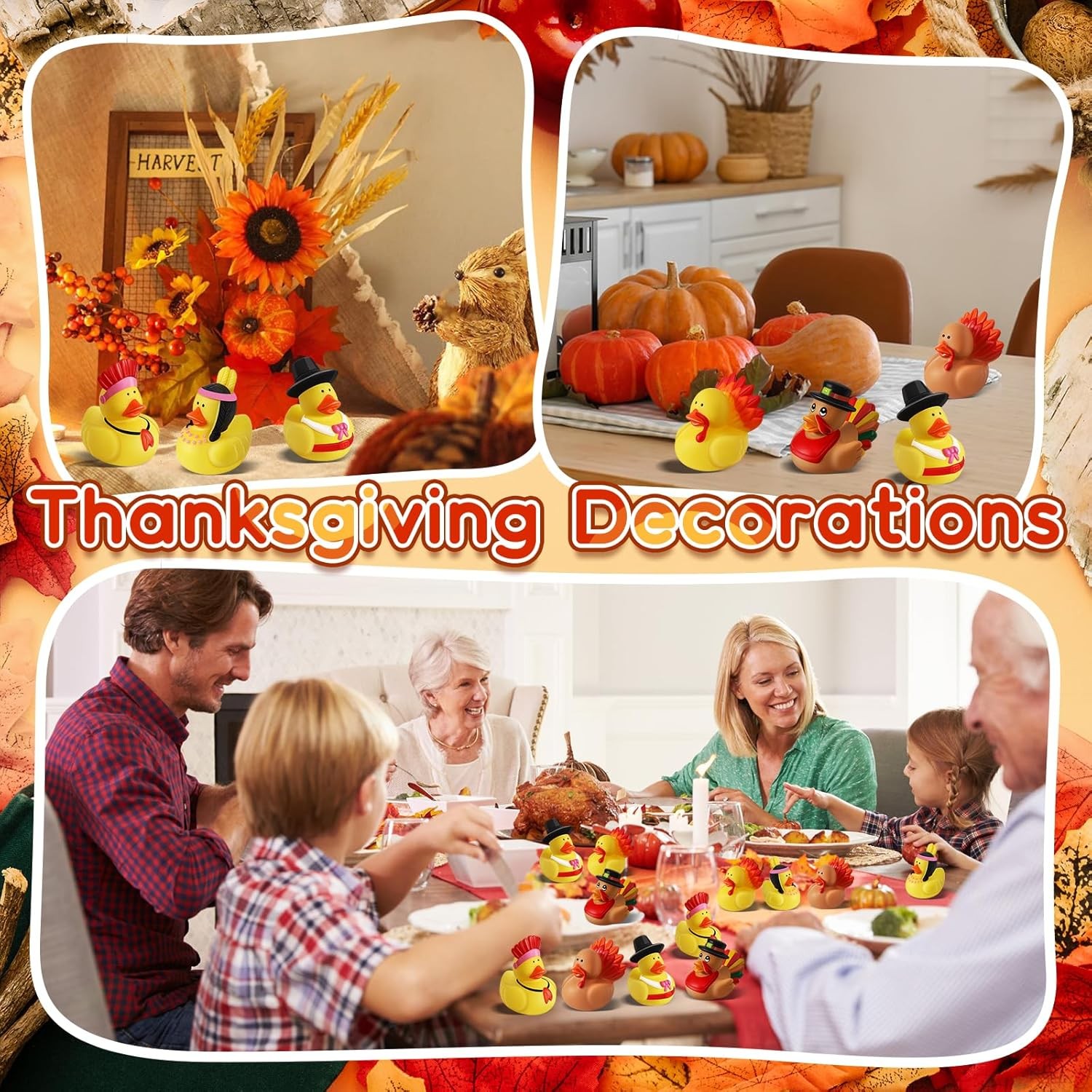 Free eBay listing template designed by dewiso.com 24 Pcs Thanksgiving Rubber Ducks, Thanksgiving Themed Ducks Bulk Turkey Ducks, Thanksgiving Party Favors Supplies for Kids Adults, Fall Duck Bathtub Bathing Toy for Holiday Autumn Table Centerpiece FREE AND FAST SHIPPING! Assortment Thanksgiving Design: Our Thanksgiving ducks feature 6 different styles inspired by Thanksgiving and harvest elements. There are Pilgrim Duck, Native American duck, Turkey duck in the Thanksgiving Rubber Ducks Set. These rubber ducks have an attractive appearance and capture the essence of the holiday season Super Value Thanksgiving Ducks Set: The Thanksgiving rubber ducks kit comes with 24 pieces, providing an ample supply for various purposes. The colors are predominantly yellow, a warm tone that complements the season's vitality. Their elegant and distinct styling will definitely leave an impression. The abundance of these rubber ducks caters to your every need Endless Fun: Our rubber ducks bath toy is exquisite and cute. Add these ducks to your bathtub and watch them float around. Make your kids' bath fun and interesting with these Thanksgiving bath toys. These rubber ducks are great for cruise ships. You can also put these Thanksgiving ducks in your car, in your community, or on a cruise ship to spread happiness Ideal Gifts: These fall rubber ducks are suitable for Thanksgiving celebrations, party favors, bathtub decorations, cake decorations, school prizes, families, relatives, roommate gifts, and Thanksgiving Day exchanges, Birthday Gifts, or even educational tools in classrooms. Our rubber ducks add a charming touch to any occasion. The gift receivers will surely cherish these cute and serviceable toys, adding fun to their Thanksgiving Safe Material: Thanksgiving rubber ducks are made of high-quality rubber and measure about 2 inches. This size is easy to grasp for both adults and children. Our ducks are great baby bath toys. It's reliable and also easy to clean, paired with orange, and yellow colors, hard to fade. Smooth and soft surface allows you to play with them casually Product We offer a 30-Day Return Policy on items which you are not completely satisfied with. You have the option for a full-refund or an exchange of the item. No returns are available on items shipped outside of the US . Shipping We offer Free Shipping to the US and ship within 2 business days of payment, usually sooner. We use UPS express shipping. That's why your products are usually delivered within 3 days . Contact We try our very best to make sure every customer is completely satisfied. If there's a problem , message us! We're happy to help. 24/7 live chat available.
