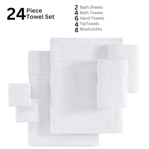 Politica di ritorno Consegna veloce Venditore di fiducia 24 Piece Bathroom Towels Set - 100% Cotton Bath Towel Sets, 4 Bath Towels Extra Large, 2 Bath Sheets, 6 Hand Towels for Bathroom, 8 Face Wash Cloth, 4 Fingertip Towels - White Towels Descrizione del prodotto The Towel Extravaganza: Get ready for the ultimate towel party! This 24-piece set includes 2 bath sheets (35" x 66"), 4 bath towels (28" x 54"), 6 hand towels (16" x 26"), 8 washcloths (12" x 12") and 4 fingertip towels (12" x 18"). It's a towel takeover! Elevate your appreciation for luxurious towels as you indulge in the sumptuous softness of our meticulously crafted 100% cotton oversized bath towels for adults. Beyond their unmatched comfort, savor the outstanding absorbency and enduring durability, fostering a discerning appreciation for the excellence in textile craftsmanship. Towel Sizes for Every Life Event: Experience the perfect size, from the comforting "I need a hug" bath sheets to the luxurious "just a little dab" fingertip towels—all OKEO TEX certified for plush comfort and an eco-conscious choice. So wrap up in comfort and peace of mind Stitching Tougher Than Grandma's Cookies: These towels are built to last! With double-stitched edges, they can handle more spins in the washing machine than a dance floor at a disco. Laundry Day? More Like Spa Day: Our towels are so quick-drying, you'll be tempted to bring them to the beach for impromptu towel-surfing sessions. Spedizione Ritorna Pagamento Spedizione La spedizione è GRATUITA per tutti gli indirizzi in Italia. Tutto il nostro stock viene spedito da magazzini situati in Italia. Tutti gli ordini verranno spediti entro 24-72 ore dal ricevimento del pagamento. Consulta il nostro feedback per vedere le ottime recensioni sulla VELOCITÀ di spedizione che offriamo. Ritorna Il venditore non accetta resi. Pagamento Al momento accettiamo pagamenti solo tramite gestione pagamenti eBay. Una volta effettuato il pagamento, spediremo la tua spedizione entro 1-3 giorni lavorativi. Si prega di fare riferimento alla scheda "Spedizione" per ulteriori informazioni sulla velocità di spedizione verso la tua destinazione.
