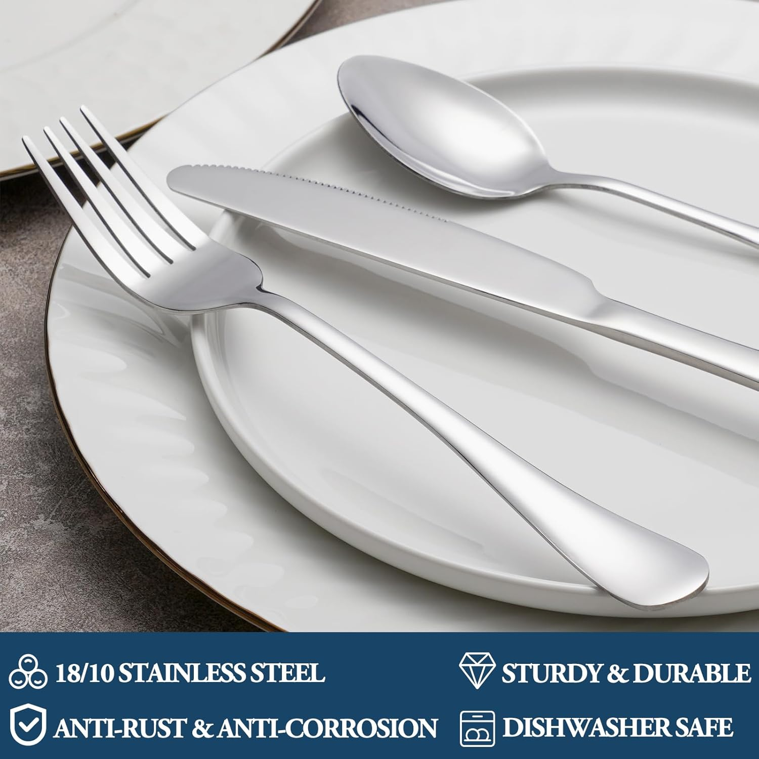 GOOD VALUE: Our stainless steel fork set contains 24 forks, which allow you to replenish the cutlery in time, and help you complete the tableware set when you find that the set is missing forks. If you’re looking for an inexpensive replacement without replacing entire silverware set, then you have come to the right place. PREMIUM STAINLESS STEEL: These forks silverware are made of high quality food grade stainless steel which is very durable, rust-proof, corrosion resistant, non-toxic, BPA free, no metal aftertaste. Meanwhile, its sturdiness ensures that it will not bend easily providing you with long - term use. Most importantly, they’re dishwasher safe. PROPER WEIGHT AND COMFORTABLE HANDLE: Unlike other brands, the curvature of our dinner forks set handles is designed according to the posture of the hand, and the appropriate weight and perfect balance are added to ensure maximum comfort during use that avoids you feel tired. Moreover, the smooth edges ensure safety and no scratches. EXQUISITE WORKMANSHIP AND ELEGANT SHAPE: Highly mirror polished, smooth edges that ensures the safety of your lips. Our fork set designed to seamlessly add more elegance and class to your table. It has a classic design allows for mix and match with your existing flatware to elevate everyday meals into a fine dining experience. FUNCTIONAL IN MANY OCCASIONS: Classic metal forks set are multifunctional no matter for daily use or storage for festivals and formal events like weddings, parties, celebrations and family dinners, picnics and BBQ. And they also are the perfect choice for restaurants, bistro, cafe, roadhouse and hotel. Product Description Specification: Material:18/10 stainless steel Package includes: 8" Dinner Fork x 24 Using instruction: 1.Please wash the fork set before first use to make sure no manufacturing residue. 2.Please clean the forks after using and dry the pieces for their durability. 3.Please do not use iron wire to scratch the pieces to keep their smooth surface. 4.The silverware set is Dishwasher Safe so you can run it in dishwasher to save your labor. Our forks are made of premium stainless steel, which contains specific Cr and Ni ratio. This material makes great contribution to the rust-proof, luster of our forks, which makes our forks durable and shiny. Multi polished, our fork set have very smooth edge, which couldn't hurt you when used. Specially treated surfaces, our fork set could stay shiny after years used. The curvature of our fork handle is designed according to the posture of the hand, which makes it more comfortable to hold and will not feel tired after long-term use. The handle has some thickness, so it is comfortable to grip, and is strong enough not to bend or break.
