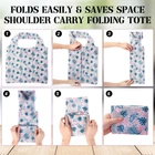 Description Features: Easy for storage: You can use these folded reusable bags to some items like dolls, which can also be applied for shopping, travelling as you like. Present supplies: The reusable shopping tote can be applied as presents for your mom, wife, sister, workmates or friends, they will be satisfied. Specifications: Material: polyester Color: as pictures shown Size: as pictures shown Package includes: 24 x Reusable grocery bags Notes: Manual measurement, please allow slight errors on size. The color may exist a slight difference due to different screen displays. Large Capacity: these reusable grocery bags have an open size of 46 x 40 cm/ 18.11 x 15.7 inches, lightweight and strong, with reinforced seams, exquisite workmanship, lightweight and sturdy, can hold more than 50 pounds of items, such as canned food, milk, fruit, etc.; The wide and long shoulder straps allow you to carry to reduce the burden, a nice helper for daily shopping Foldable Design: these reusable shopping bags can be put back into the tote bag when you don't need them, measure 14 x11/ 5.5 x 4.3 inches when folded; If you do not like to fold, this is a choice for you to easily put into backpacks, wallets, pockets, will not take up too much space Safe Material: these washable shopping bags are made of quality polyester material, clean and safe, machine washable and reusable, quick drying and lightweight,with strong stitching, which can replace plastic bags, convenient to use Beautiful Set: you will get 24 pieces of foldable tote bags in 10 different colors, bright colors to add color to your daily life, bring you a good mood, suitable for both men and women, the abundant quantity is enough for you and your family daily use and , different colors are easy for distinction, practical and beautiful Applicable Occasions: the shopping cart bags for groceries can meet your daily needs, also suitable for various event occasions, such as outdoor activities, birthday parties, picnics, travel, seaside and other outdoor activities, also nice for Christmas, Thanksgiving, Mother's Day and other holiday gifts for your friends and family, a practical gift