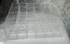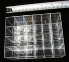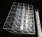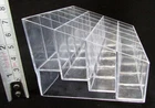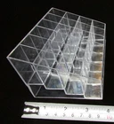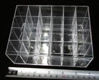 24 SLOTS LIPSTICK Makeup Stand Display HOLDER Clear Acrylic Cosmetic Organizer This lipstick holder is 5¾" long by 3¾" deep by almost 3" tall. It is stepped up so you can see the ones in the back. It is in very good, clean condition. Any questions, please ask...