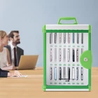 Specification Material: Aluminum Alloy, Acrylic Board, High-density Board, Pearl Cotton Process: Edge Wrapping Treatment Color: Silver, Green Shape: Rectangular Style: Modern Mount Type: Wall-mounted, Free Standing Assembly Required: No Number of Keys: 2 Number of Slots: 24 Product Size: 28*21*40cm/11.02*8.27*15.75in Package Size: 40*28.5*21cm/15.75*11.22*8.27in Gross Weight: 2.75kg/6.06lbs Net Weight: 2.3kg/5.07lbs Package Included 1* Cell Phone Storage Cabinet 2* Keys ❤❤❤Welcome to royalfeatured ❤❤❤ Description Managing the cell phones of your students or staff properly will make people more concentrated on studying or working, thus improving the efficiency of life, work, and study. We have specially launched a 24-slot lockable cell phone storage cabinet that combines security, practicality, and aesthetics. Its unique green appearance not only adds a touch of freshness to the environment but is also an ideal choice for offices, schools, libraries, gyms, and other public places to keep cell phones safe. Key Features Sturdy and Durable: It is built with high-strength aluminum alloy, acrylic board, high-density board, and pearl cotton, which is not only sturdy and durable but also pry-resistant and pressure-resistant to ensure your long-lasting use. Large-capacity Storage: It provides 24 independent and equal-sized storage slots, which can easily store 24 different models of cell phones(not included) to meet your large-scale use needs. Protective Design: The edges of the cabinet are treated with aluminum alloy wrapping to prevent accidental scratches and extend the service life of the cabinet. At the same time, the pearl cotton protection layers can effectively protect your cell phone from being scratched. Efficient Heat Dissipation: It is equipped with multiple heat dissipation holes on both sides to promote air circulation and effectively avoid overheating problems arising from long-time storage of electronic devices. User-friendly Design: Each slot has a numerical label, which you can edit by yourself for easy identification of your cell phone without searching around. The cabinet door lock design with keys prevents the loss of your phone or your valuables. Stylish Appearance: The silver housing with unique green embellishment not only enhances the overall visual aesthetics of the product but also creates a serene and comfortable atmosphere that blends skillfully with modern interior decorating styles. Space-saving Installation: The one-piece structure with mounting holes on the back allows you to hang this product easily on the wall, which can reasonably utilize the wall space and save you countertop space. Customer Service: We aim to provide quality products and services. If you have any problems, please feel free to contact us. We will reply and solve the problem for you as soon as possible. Details Anti-slip Pads: Four anti-slip pads on the bottom of the cabinet can increase friction and ensure a more stable placement. Convenient Handle: The carrying handle on the top allows you to move and carry this product conveniently. Clear Door: The clear acrylic door allows you to see at a glance the state of cell phone storage inside the cabinet for reassuring use. Application It is suitable for schools, classrooms, exam rooms, offices, factories, cell phone repair stores, beauty salons, restaurants, libraries, gyms, meeting rooms, laboratories, and so on to store cell phones or small valuables. Specification Material: Aluminum Alloy, Acrylic Board, High-density Board, Pearl Cotton Process: Edge Wrapping Treatment Color: Silver, Green Shape: Rectangular Style: Modern Mount Type: Wall-mounted, Free Standing Assembly Required: No Number of Keys: 2 Number of Slots: 24 Product Size: 28*21*40cm/11.02*8.27*15.75in Package Size: 40*28.5*21cm/15.75*11.22*8.27in Gross Weight: 2.75kg/6.06lbs Net Weight: 2.3kg/5.07lbs Package Included 1* Cell Phone Storage Cabinet 2* Keys Notes Please check the product size before purchasing. Please keep your keys safe to avoid losing them. Please note that this item does not include cell phones, small valuables, etc. Please allow the slight color difference caused by the shooting light and 1-3cm error due to manual measurement and make sure you do not mind before ordering. Payment Delivery details Terms of sales About us Contact us Payment We accept ebay payment 。 Fees such as import duties, taxes are not included in the item price or shipping costs. These charges are the buyer's responsibility. Delivery details Shipping: 2-9 working days to: USA Terms of sales We maintain high standards of excellence and strive for hundred percent customer satisfaction. Feedback is very important to us. We hope that you contact us immediately before you give neutral or negative feedback, so that we can address your concerns. It is impossible to address issues if we do not know about them! About us Your satis faction is our ultimate goal. We work hard to earn your trust and future business. Our certified technicians have tested each item before shipping. The unit comes with 1 year limited warranty on all manufacturing defects. a) If you receive a defective item, you may return it or ask for a discount. Please contact us within 14 days after you receive the package. b) What you returned must be intact and in its original packaging as re? u. Customer is responsible for shipping costs of the returned item. c) We will cover the cost of shipping back t with the shipping rate indicated in the registration page. We will send you a new unit or refund the full payment you paid. Thank you. Contact us Business Hour Business Hour: Monday To Friday: 8:30 AM to 5:00 PM (Beijing China time) Due to time zones, our reply to your questions may not be immediately. But within above working time, we will reply your email within 24 hours. If it's non-workdays, please kindly be patient and wait till Monday. Please contact us with ebay message. Please feel free to contact us if you have any qu