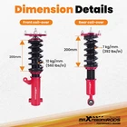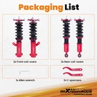 ZJPSS 24 Step Damper Coilovers Shocks Lowering Kit For Mitsubishi Eclipse 2000-2005 Coilovers 24 Way Damper Adjustable Lowering Kit for Mitsubishi Eclipse 2000-2005 Camber Plate with Pillow Ball Mount Provides More Precise Feel From Suspension And Steering Top Camber Plate with Pillow Ball Mount Provides More Precise Feel From Suspension And Steering Rebound Damping Force Adjustable 24 Step To Adjust Soft / Hard Adjustment According To Your Preference. Anodized Shock Body With Anti-Corrosion Coating Manufactured From High Quality T-6061 Billet Aluminum With Anodized Finish For Superior Strength And Corrosion Protection. Specification Front Spring rate 10 kg/mm (556 lbs/in) Rear Spring rate 7 kg/mm (392 lbs/in) Adjustable camber plate Yes Damping adjustable Yes, 24 levels of rebound damping force Height adjustable Yes, lowering 25-75mm depending on the vehicle models Package included 2 Front + 2 Rear Warranty 2 Years Maxpeedingrods' street coilovers are designed and developed for all motoring enthusiasts that want excellent handling without sacrificing comfort. This suspension system is ideal for daily driving and occasional, light track use. High quality components are adopted to ensure product durability and stability. Each application is fully test fitted and completely road tested to guarantee all our customers perfect performance and comfort expectations. Features 24 Clicks of Rebound Force Adjustment ---- Adjust Soft / Hard Adjustment According To Your Preference Height adjustable---lower your car 1-3 inches (depending on vehicle models) to get a performance ride Independent Ride Height and Spring Pre-load Adjustments Twin-Tube System for Comfortable Ride on Streets Coated finish to avoid rust Heavy Duty Steel Lower Mounts Simple install, easy to adjust. Application For Mitsubishi Eclipse (3rd-Gen) D53A/D52A 2000-2005 Specification Front top mount: Pillow ball with camber plate Rear top mount: standard rubber Damping adjustable: Available, 24 levels of rebound damping force Camber adjustable: Available Height adjustable: Yes, lowering 25-75mm depending on the vehicle models Front Spring Rate: 10 kg/mm (556 lbs/in) Rear Spring Rate: 7 kg/mm (392 lbs/in) Spring length Front: 200mm Spring length Rear: 200mm Spring Preload advised: 7-10 mm Color: Red body with black spring Package included 2 x Front coil-overs 2 x Rear coil-overs 1 x Allen wrench 2 x C spanners ★ 30-day Money Back & 12-Month Replacement Guarantee. Please feel free to contact us if there is any question. Height Adjustable Lowering Kit; 24 Clicks of Rebound Damping Force Adjustment; Independent Ride Height And Spring Tension Settings; High Rigidity 55CrSi Steel Cold-bent Springs; Anodized Shock Body With Anti-Corrosion Coating; Top Camber Plate with Pillow Ball Mount Provides More Precise Feel From Suspension And Steering; Full 1 Year Limited Warranty From Date Of Purchase. Other items you might also like MaXpeedingrods Coilover Suspension Lowering Kit For Mitsubishi Eclipse 2000-2005 Shipping Terms of Sales Payment Contact us All orders will be shipped within 1 business day after payment has been processed. For orders placed before 5:30 AM PST on business days, most items will be shipped out on the same day. All orders will be shipped with a tracking number via USPS, UPS, or FedEx Express and delivered within 2-6 business days We do not ship to P.O. Boxes, APO/FPO addresses, or Military Mail Boxes. Please ensure your address is confirmed by PayPal before checkout, as we only ship to confirmed addresses. 30-day free return and money back guarantee If you are not satisfied with your purchase, you can return the item with its original packaging to us for a full refund with no restocking fee. Please note that the return cost should be paid by the seller. One Year Unlimited Mileage Quality Guarantee If you receive incorrect items, items that are damaged during transportation, or defective items, we will accept returns and cover the return freight. Please note that the return cost should be prepaid by the buyer. After inspecting the faulty item, we will issue a refund of the return cost to the buyer. We offer a full refund or replacement for all faulty items, which includes the cost of original shipping. Please contact us before initiating a return. Our representatives will provide you with detailed instructions on how to proceed. Our guarantee covers only the cost of the item. We are not responsible for installation or other fees, such as labor, towing, additional repairs, or related expenses. We only accept payment through Paypal for all orders, which should be made through eBay. Paypal offers various payment methods, including credit card, direct debit, VISA, and others. For more information, please visit Paypal. Our customer service center is open 24 hours a day, seven days a week. If you have any questions, please don't hesitate to contact us. We are dedicated to providing excellent customer service and will do everything we can to ensure your satisfaction.