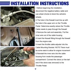 100% quality assurance tested, more responsive, less expensive, easier to install. Feature a "U-Cut-to-Fit" outer housing and stainless inner wire. Designed with a specially extruded liner for the extended life of the cable. Equipped with aluminum fittings and aluminum ferrules to eliminate fraying. Designed without cotter pins or set screws and adapt to factory and aftermarket pedals for an easy installation. Installation Instructions: Before beginning the installation, disconnect the negative battery cable and use wheel chocks to block the vehicle's wheels. The hole in the firewall must line up with the hole in the upper arm on the Throttle Pedal. Determine exactly where the Throttle Cable needs to pass through the firewall. Remove the carb end assembly. Pull the inner wire out of the cable housing. Insert the firewall fitting through the firewall from the engine side. Insert the throttle cable adjuster into the Cable Mounting Bracket. NOTE:There must be some slack to allow for engine movement. Reinstall the inner wire into the cable housing from inside the passenger compartment. Connect the clevis (or the ball end if the clevis was removed) to the Throttle Pedal. Attach the carb end assembly to the throttle arm. Tighten the nut. Cut the inner wire off so that roughly 1" of the inner wire will remain inside the carb end assembly. Insert the inner wire into the carb end assembly. Pull all the slack out of the inner wire and tighten the set screw in the carb end assembly. Check for proper operation of the throttle (and Kickdown if equipped) and adjust as necessary. Make sure there is no binding in the throttle linkage and that the throttle returns to the closed position when the pedal is released. Fitment: Fit for Carbureted, Select EFI Applications. For 86-93 Ford Mustang 302 5.0L. Vehicle compatibility charts are for REFERENCE ONLY. Check product type and size to match your needs. Material & Color: Material: made of high quality Stainless Steel and Aluminum. Color: As Picture. Package Included: 1x Throttle Cable; 1x Wrench. (100% Brand New Never Used Or Installed)