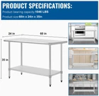 Store New Arrivals Add to Favorite View Feedback Contact 24 X 60 Inch Stainless Steel Work Table Kitchen Work Table Scratch Resistent Commercial Work Table Metal Table with Adjustable Table Foot for Kitchen Home Restaurant Description Item Dimensions D x W x H 24.02"D x 60.24"W x 34.84"H Color Silver Material Type Stainless Steel, Metal, Steel Product Dimensions 24.02"D x 60.24"W x 34.84"H Material Stainless Steel, Metal, Steel Required Assembly Yes Model Number Stainless Steel Work Table Item Weight 59 Pounds Frame Material Glass, Metal Base Type Leg Finish Types Polished Size 24W×60L Brand FDW Manufacturer FDW ✨Multiple Application-The work table is a good choice to put it in your kitchen, restaurant, workshop,garage, bar, warehouse or any other commercial setting. We have different sizes of the work table ,you can choose the most suitable size for your place of use. ✨High Quality Material-Our kitchen work table is made of high quality stainless steel, anti-rust, and not easy to wear and tear.Easy to clean and sterilize, Using rag or paper you can easily clean it quickly.Metal prep station tables are superior to wood or glass. ✨Adjustable Bottom Plate-The kitchen work table has two layers,you can adjust the bottom plate to different heights according to your requirements.It can offer you enough storage room for microwave oven,juicer or any other tools. ✨Easy Assembly-According to the instructions in the manual, you can complete the assembly in 15-20 minutes.The four legs of our kitchen work table are adjustable and can be used anywhere,You can freely change the height of each metal work table foot to suit your demands. ✨Customer Guarantee-Never worry about the quality of our products.If there are any problems with the stainless steel work table, please contact us immediately.Your satisfaction is our greatest power. Product Description Durable Stainless Steel This economy work table features durable stainless steel, providing strength and durability, preventing crack, rust, and deformation. A smooth surface allows for effortless cleaning and keeps its gloss. 1046 Lbs Load Capacity Our kitchen work table is made of high quality stainless steel and galvanized sheet, which improves the service life of the product. Adjustable Undershelf You can adjust the bottom plate to different heights according to your requirements, but it should be noted that when adjusting, you'd better first fix the diagonal at the same height. Adjustable Table Foot The adjustable table foot can effectively help the worktable to be placed smoothly in different places. Stainless Steel Table Top Stainless steel wire drawing table makes the product more wear-resistant, increases the service life of the table, but also makes the table look more beautiful. Round Corner Table Edge Design The design of round edge table greatly improves the safety factor of the product in the process of use. Easy to Assemble Our instructions are very concise. It takes 20-30 minutes to open the package and assemble the product. Wide Use Scenarios The stainless steel table you deserve in your home or commercial kitchen, laundry room, backyard, garage, or wherever it is needed; You can use it to store your bowls, kettle, oven,coffee machine, and so on. Stainless Steel Prep Table Stainless steel desktop and table foot greatly improve the service life of the kitchen work table. Adjustable table feet make the stainless steel worktable suitable for all kinds of places . Stainless steel quality of metal work table makes cleaning easier. The lower shelf of the kitchen work table provides more storage space. work table working table stainless steel work table work tables metal work table kitchen work table stainless work table ss kitchen work table 24 work table 36 work table portable work table metal work table kitchen work table ABOUT US We offer the best prices around on high quality products. Our E-store includes media such as books, movies, music and games while offering electronics, toys, sporting apparel, clothing, tools, general home, garden items and more. SHIPPING We are always working hard to ensure your package arrives as soon as possible. Please understand that some factors like weather, high postal traffic, and the performance of shipping companies are outside of our control. We offer free shipping to the lower 48 states and ship within 2 business days of payment, usually sooner. We do not accept P.O. Boxes. Please provide a physical address. RETURNS We offer a 30-Day Return Policy on items which you are not completely satisfied with. You have the option for a full-refund or an exchange of the item. No returns are available on items shipped outside of the USA. PAYMENT We accept PayPal. CONTACT US This page content is yet to come Please ad us to your favorite seller and visit again later Thank You CUSTOMER SATISFACTION We try our very best to make sure every customer is completely satisfied. If there's a problem, message us! We're happy to help.