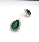 2.40 Ct Pear Cut Lab Created Green Emerald Stud Earring In 14K White Gold Plated