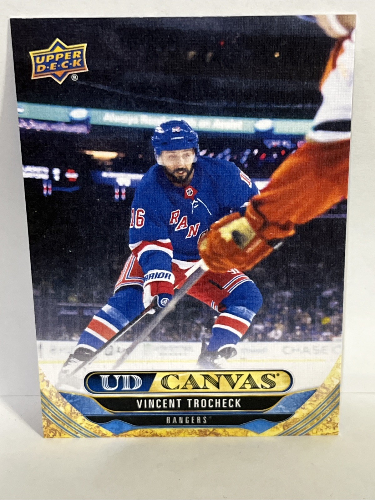 Explore the ice with this lot of 31 Upper Deck Canvas cards from the 2024-25 season. Each card captures a different player, showcasing the diverse talent of the NHL. Manufactured in Italy, these English-language cards are standard-sized and made from high-quality card stock, ensuring a durable addition to any collection. The set features various inserts and parallel varieties, adding a touch of rarity and collectibility. As original Upper Deck releases, these cards are a must-have for fans and collectors alike. See the pictures to get a closer look at these memorabilia from the 2024-25 UD Extended Series. Only cards seen in pictures are included with this set . All 31 cards to be sold in as is condition. Cards will be shipped out with tracking and in penny sleeves and team bags and bubble mailers. No return or refund of any Kind. All sales are final.